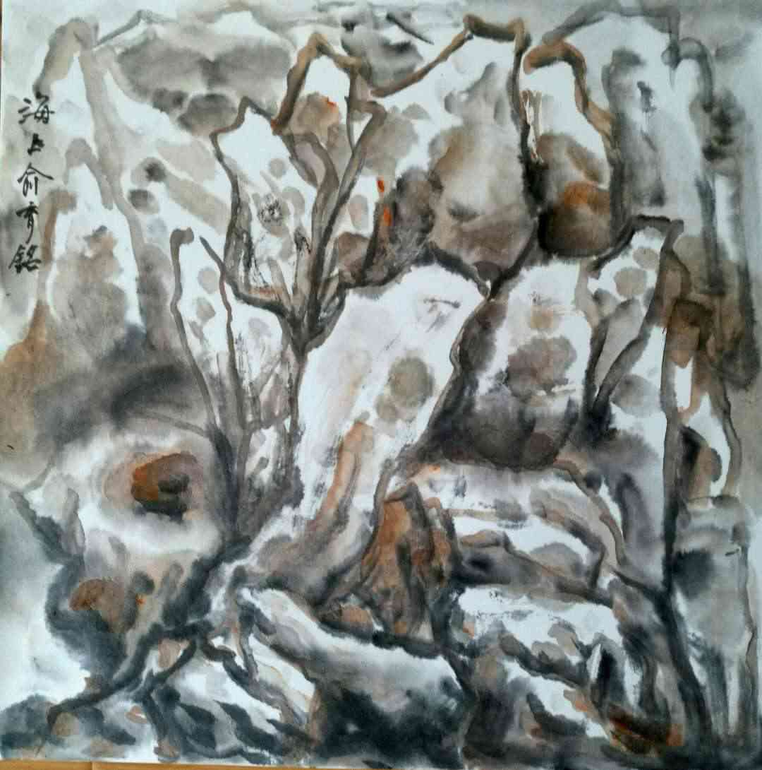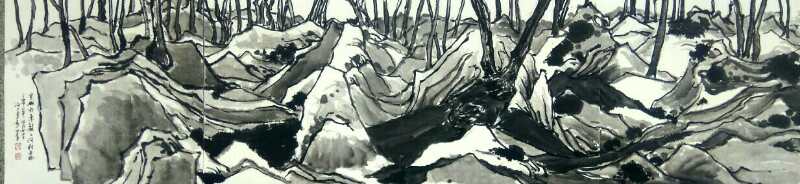 作者:夏建峰 作品:水东上何村的石林 中国画 尺寸(200×50cm)