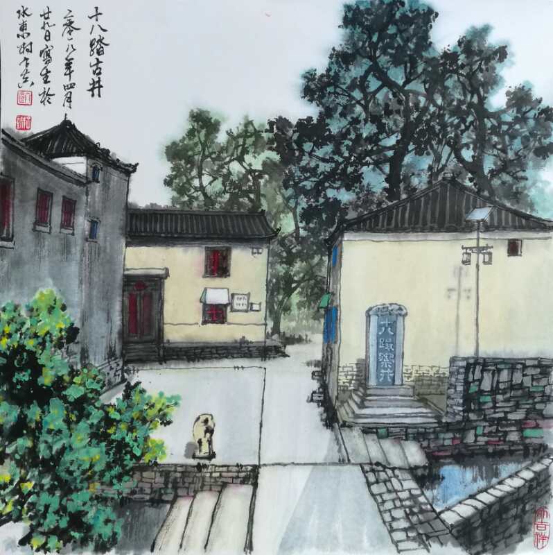 作者:卞真 作品:十八踏古井 中国画 尺寸(50×50cm)