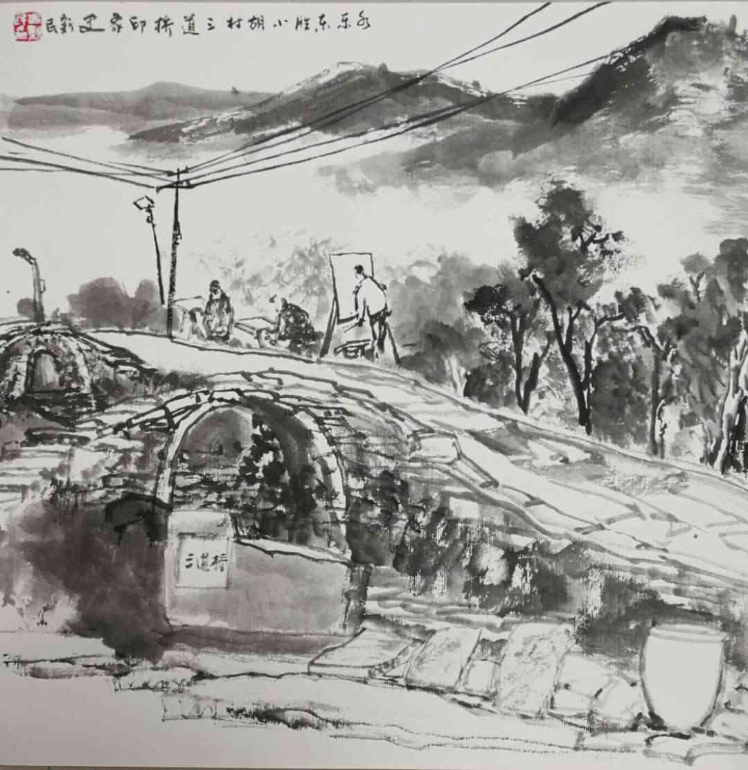 作者:史新民 作品:三道桥 中国画 尺寸(50×50cm)