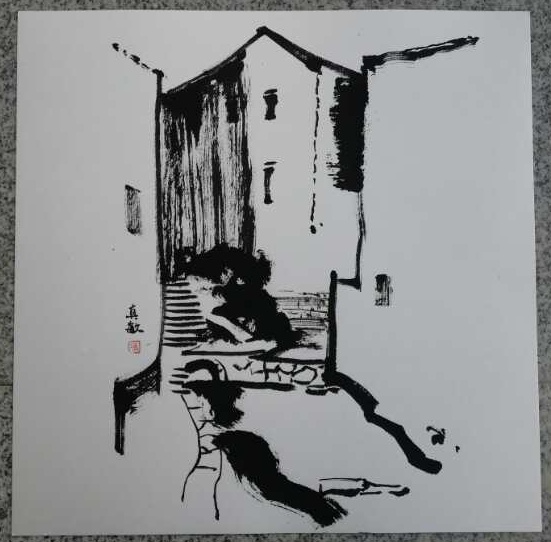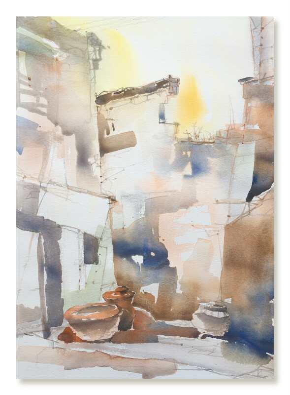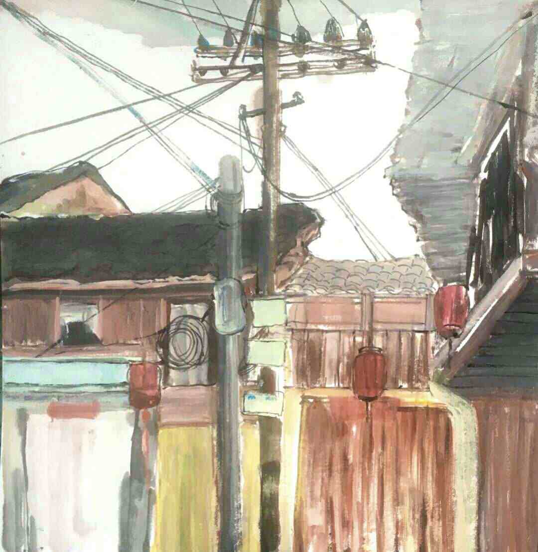 作者:殷实 作品:水东古镇 纸本水彩 尺寸(45×45cm)