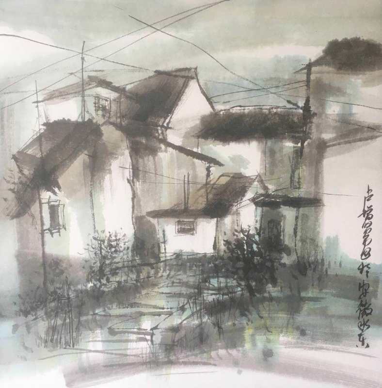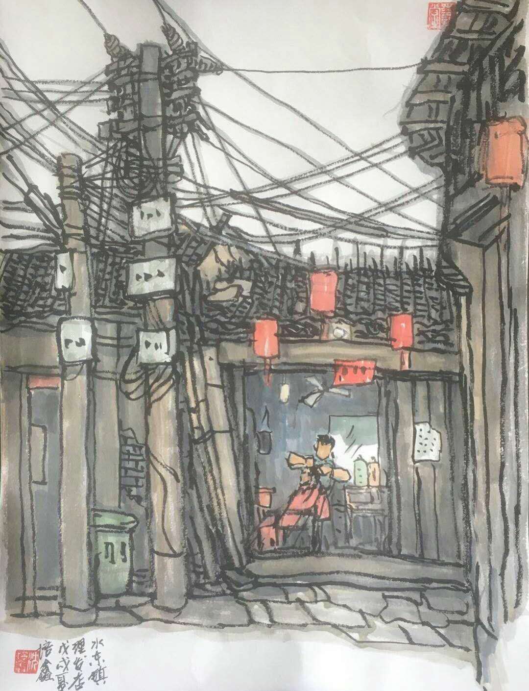 作者:姚振彪 作品:宣城水东镇上何石林写生 国画