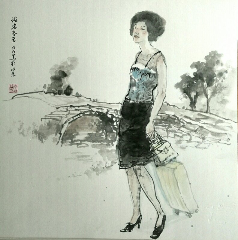 作者:李勇智 作品:游客春至 水墨国画 尺寸(50×50cm)