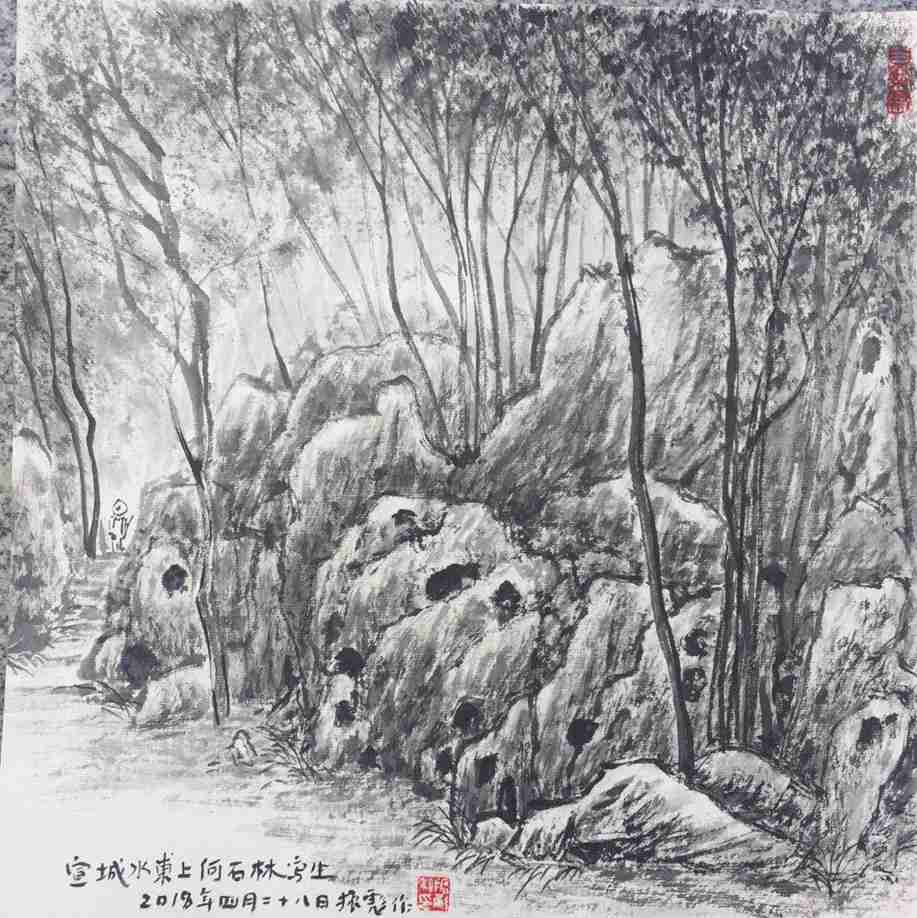 上海市美术家协会创作沙龙21位画家于4月26日一30日赴安徽宣城水东镇,先后在水东古镇的老街、老宅、清代十八踏、天主堂,上何村的石林,龙泉洞景区,鸦山古道,千年银杏长廊,小胡村宗村等古村,用国画、油画、水彩画和速写等艺术形式采风写生,大家积极投入,短短五天结累了百余幅写生作品,写生期间还组织了一次观摩交流,应当地镇政府及文化旅游部门邀请,沙龙从每位画家写生作品中挑选一幅作品作为镇陈列館展品陈列展出。本次活动由上海美协创作沙龙和宣城振宣文化发展有限公司共同举办。是自去年上海市美术家协会和宣城市宣州区政府签定《上海美术家协会水东创作写生基地合作协议》后又一次写生活动。上海美协副主席、秘书长陈琪、水东镇党政主要领导对这次活动作了精心安排和指导。