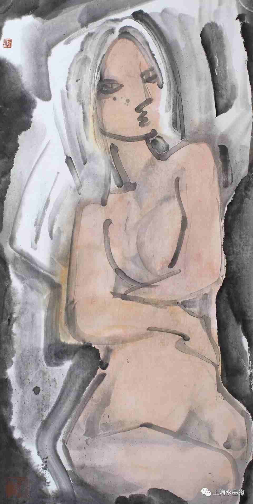 《浴女-No.1》 33.7 * 68.9 cm 纸本水墨 2017年
