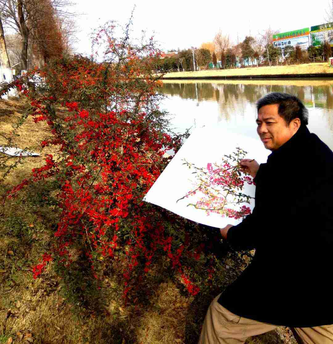 阳历新年,2018年元月1日,夏建峰夫妇俩应邀到崇明岛参加婚礼。夏老师与夫人自驾到了崇明岛,看到路边美丽的红果,就忍不住想用画笔记录下这美丽时刻,夏老师夫人也是一位画家,两位老师有相同的兴趣爱好真是羡煞旁人呀。