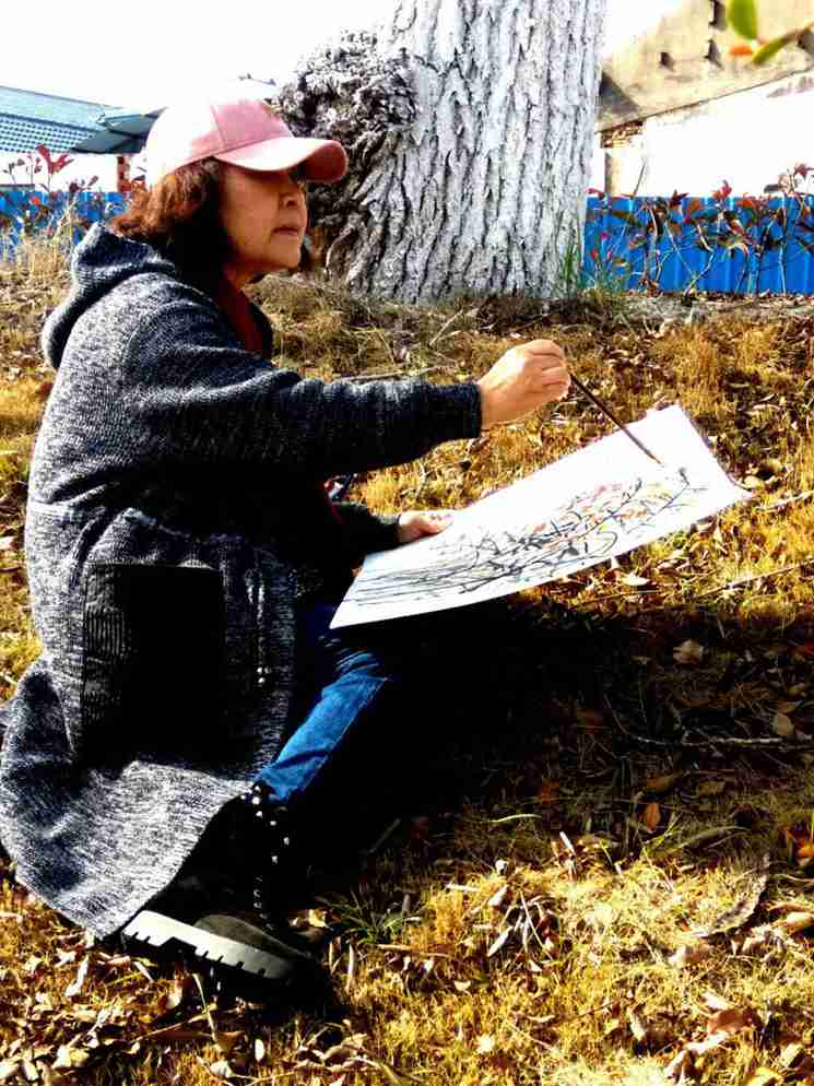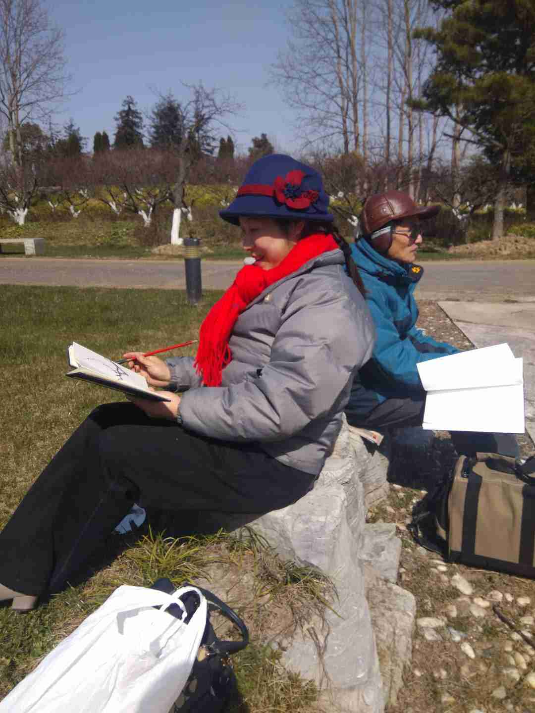 2月12日夏建峰老师邀请海墨画会的几位画家到海湾公园梅花写生。