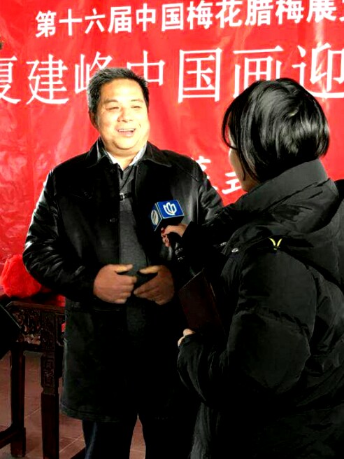 元月10日“2018夏建峰中国画作品迎春展”,在上海海湾国家森林公园唐梅厅举行,夏老师接受电视台采访。