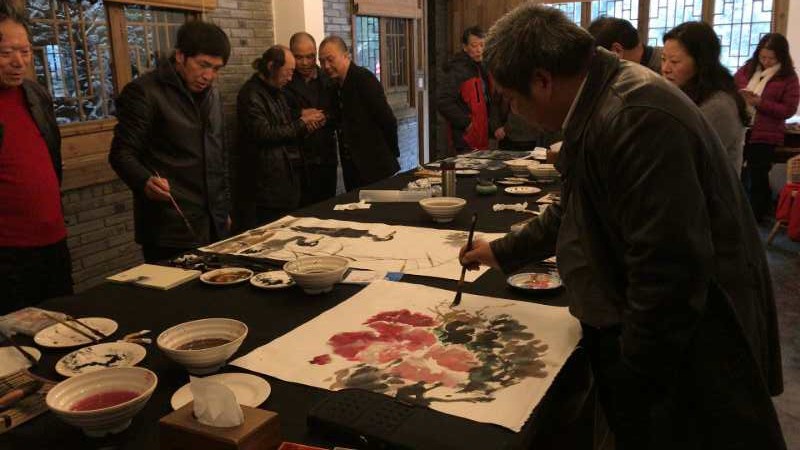 2月8日身为上海美术家协会花鸟画沙龙召集人夏建峰,受上海市美术家协会委托并协助美协,由上海市文联和上海美术家协会主办的上海海湾国家森林公园协办的“一花一世界”陈琪先生梅花名家写生示范活动,在唐梅厅举办活动,参加活动的画家有一百多人,上海电视台作了报道(合影右一上海市美术家协会副主席兼秘书长陈琪,左一夏建峰老师)。