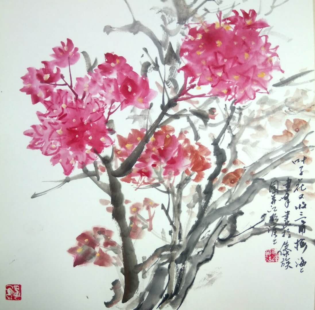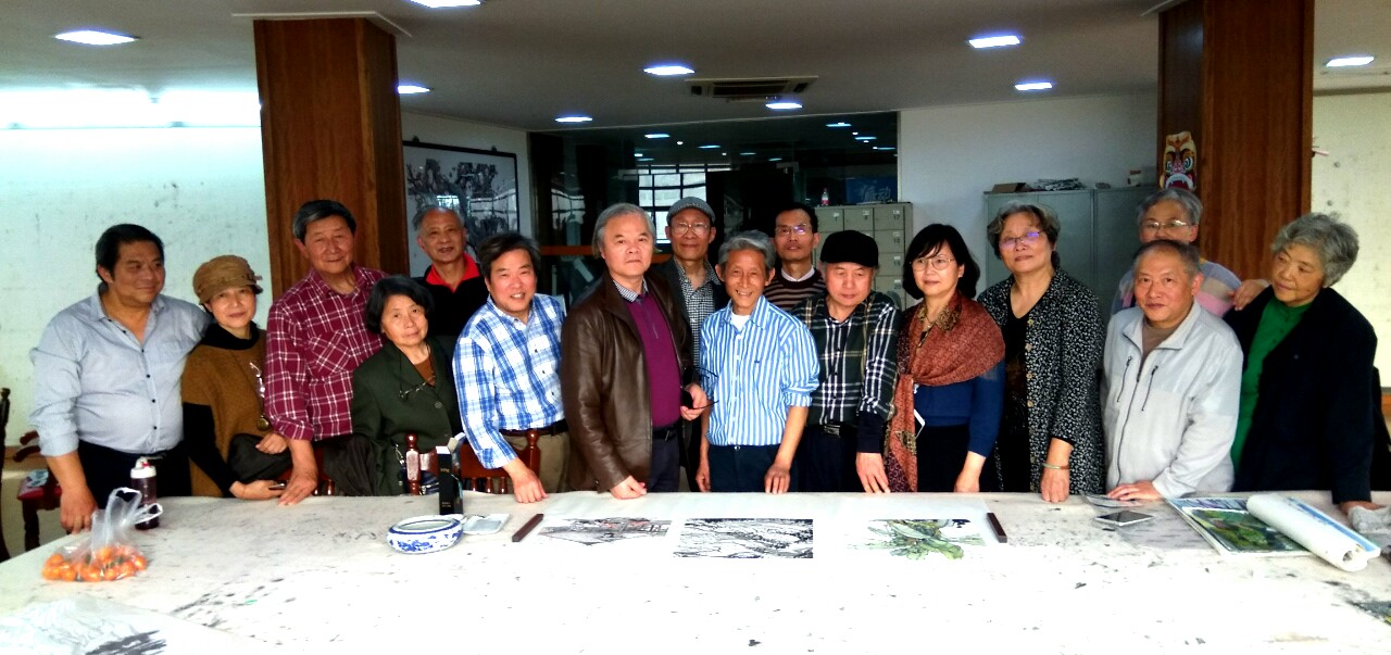 元月27日夏老师应邀参加上海美协海墨画会在延安饭店举行的迎春茶话会,并和上海著名花鸟画家陈世中先生合影(大学时期的老师)。
