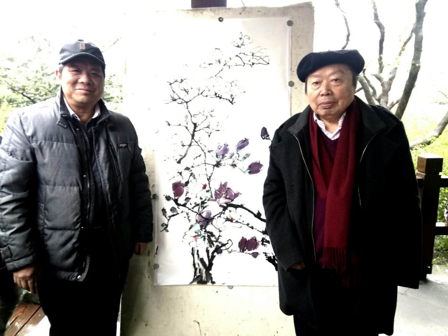3月21日夏建峰老师参加了在上海市静安公园协助美协举办、“一花一世界”著名画家杨正新玉兰花名家示范活动,并与杨正新老师合影。