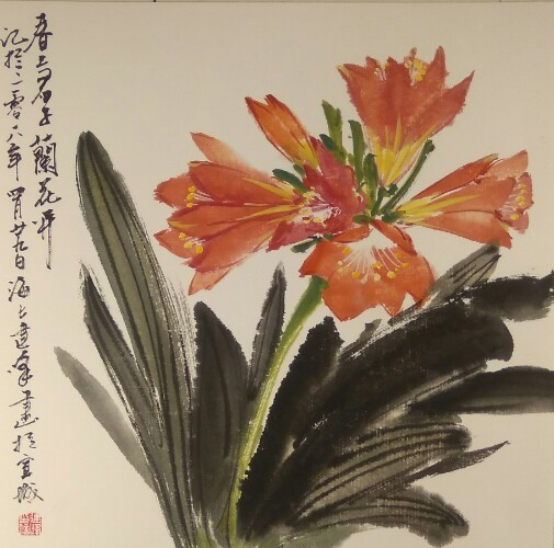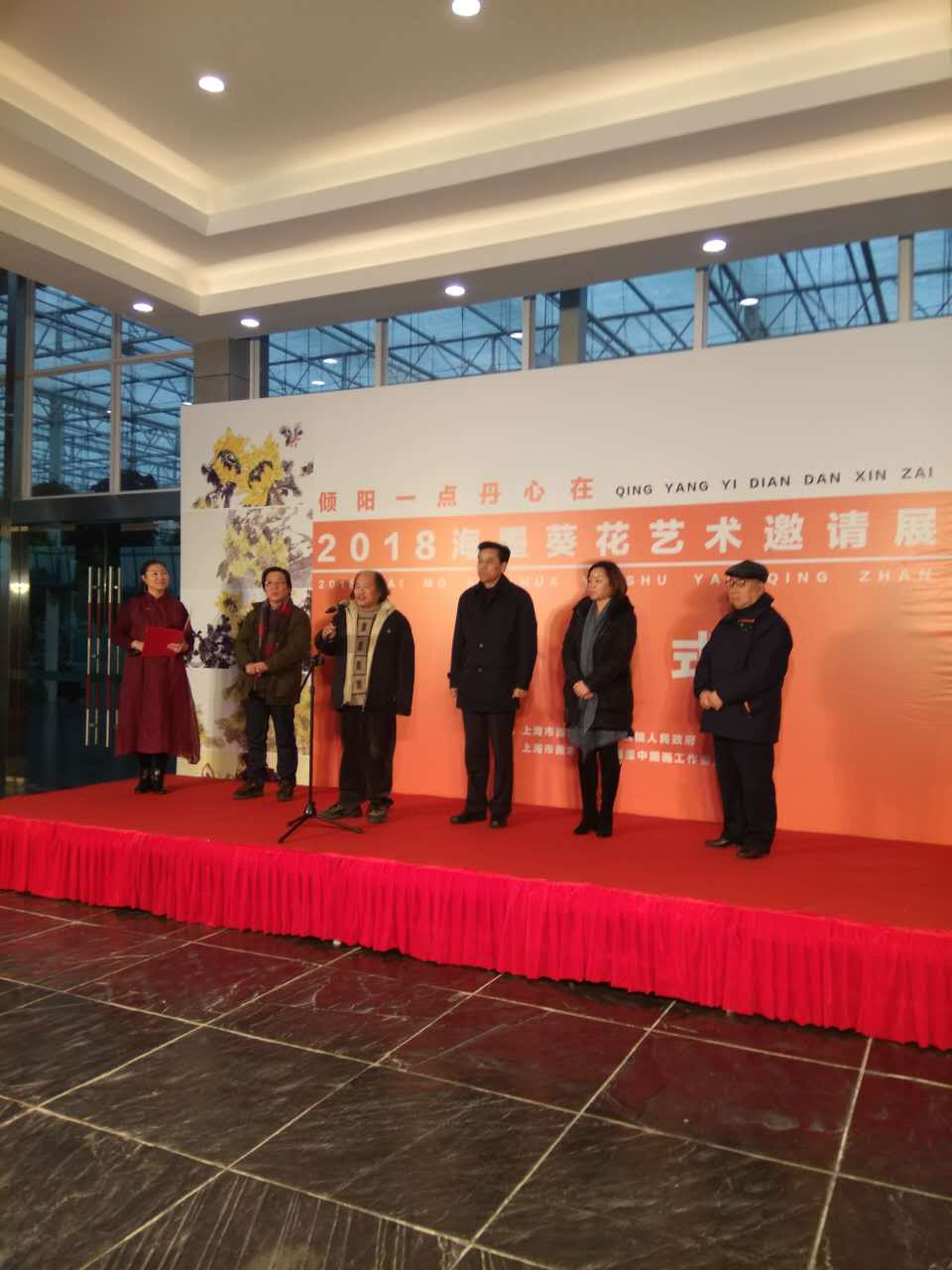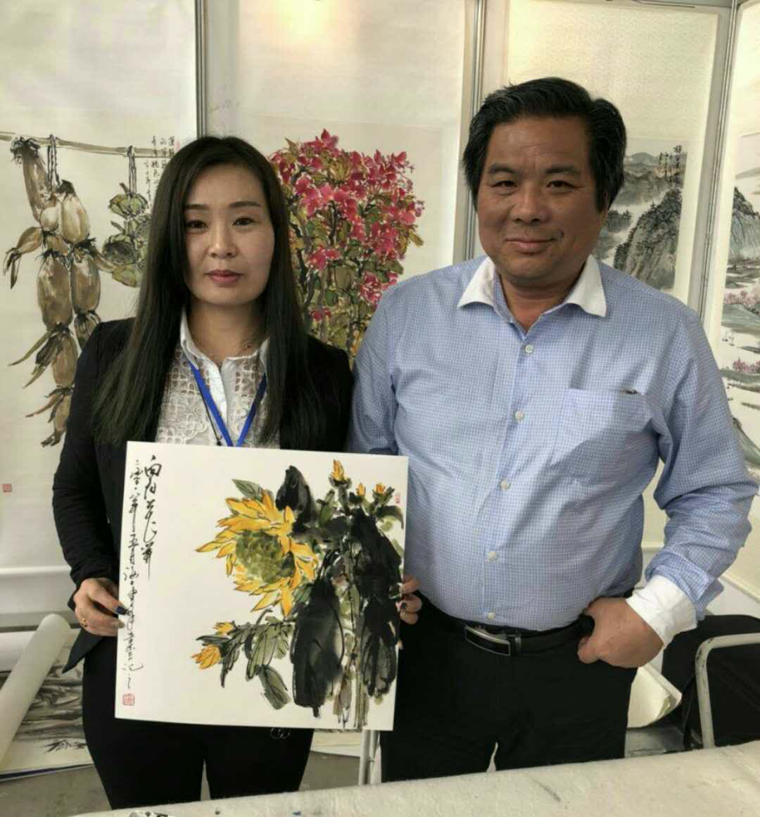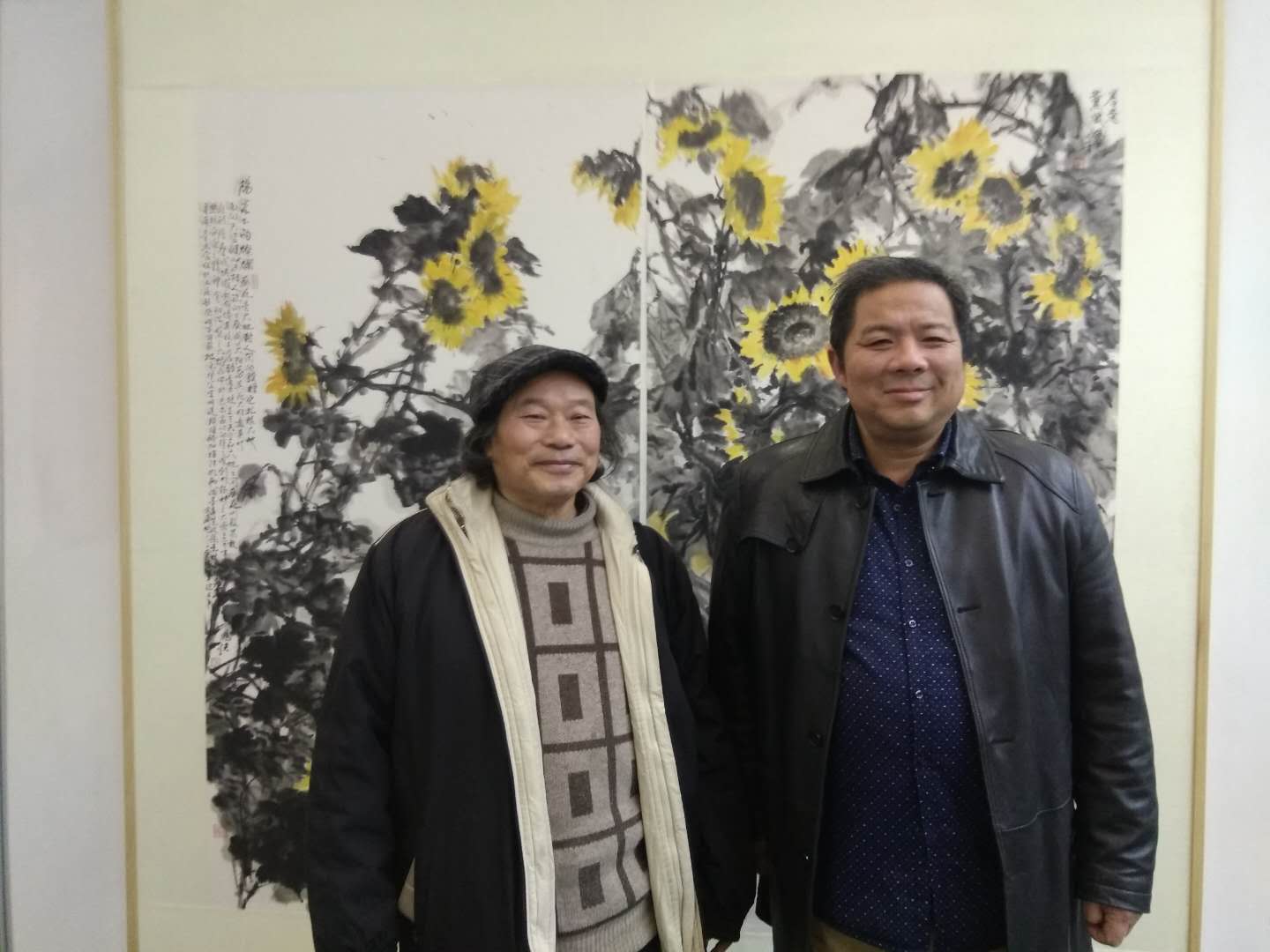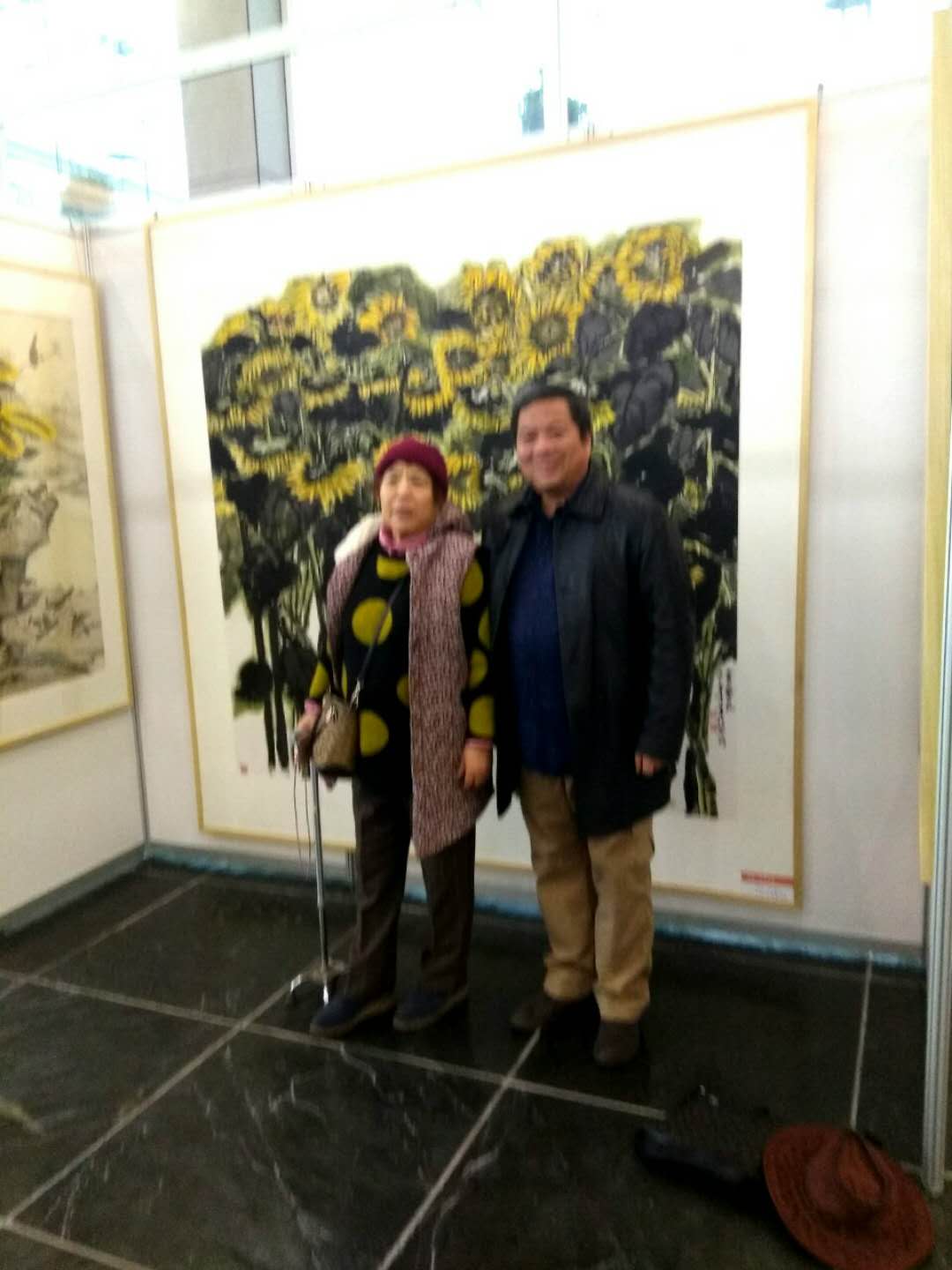 元月25日,夏建峰老师的作品“向日葵”参加海墨画会在上海鲜花港的展览,夏建峰老师和应鹤光会长在应会长的作品前合影。