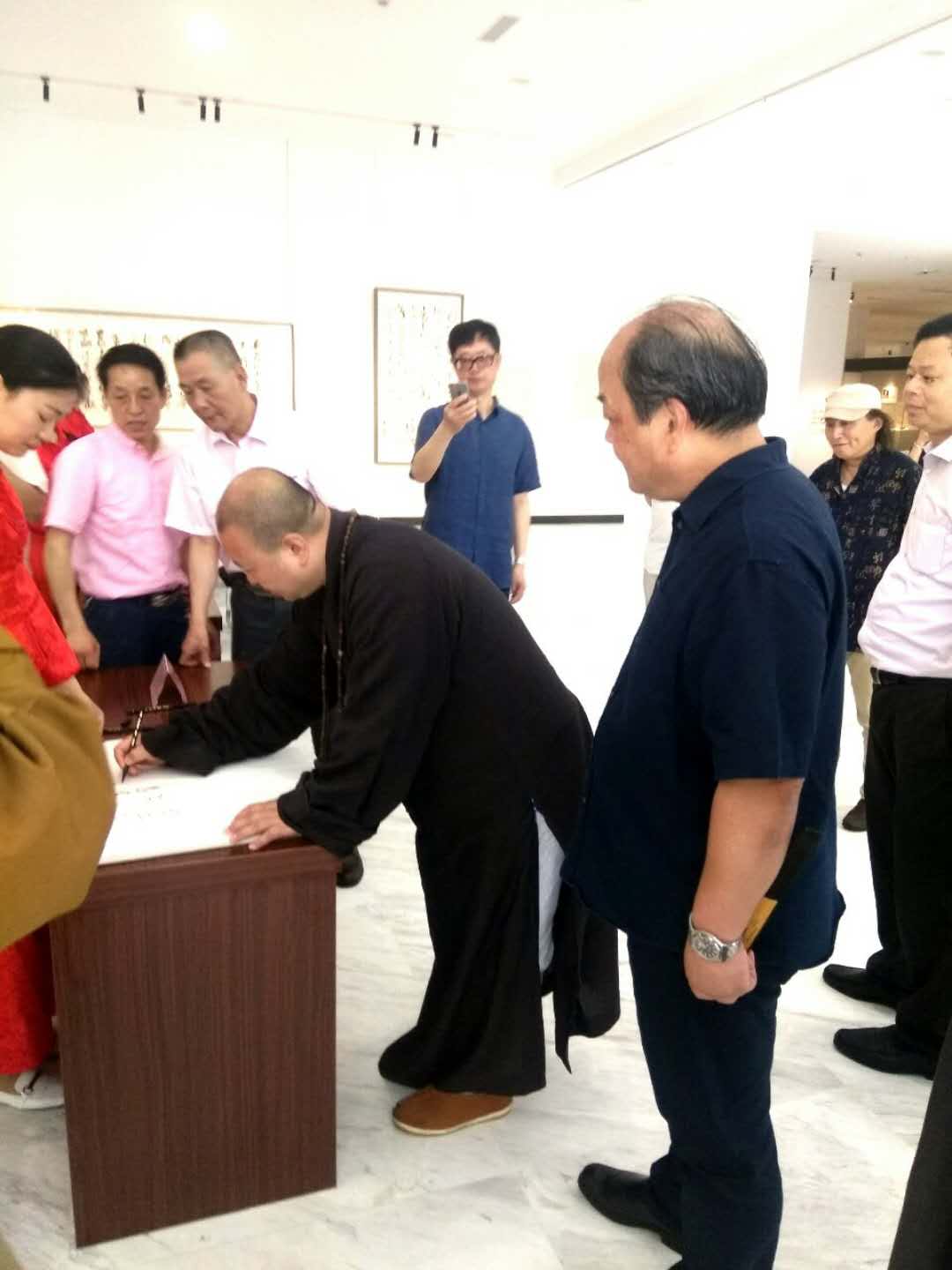 上午九点半刚刚过,觉醒大和尚等嘉宾的面包车来到展览馆大门,乐震文院长等在门口迎接。