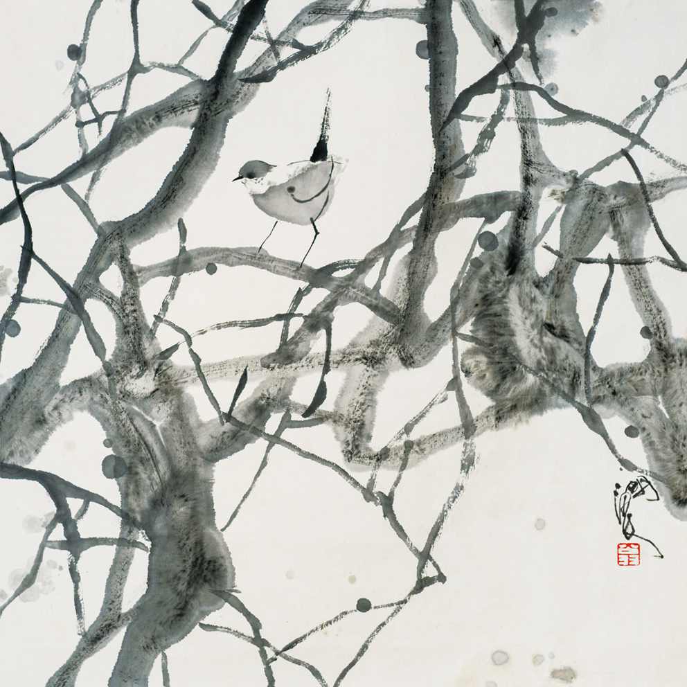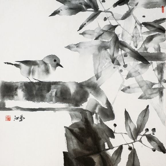 作品《鸟鸣林更幽》2017年11月入选上海第九届美术大展
