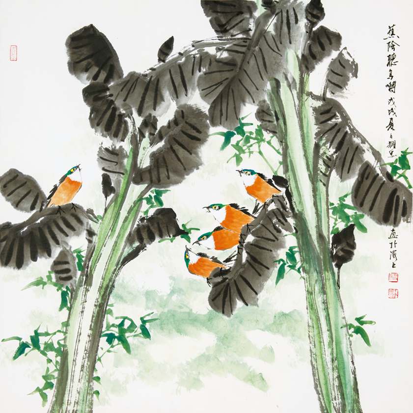 蕉荫听鸟鸣 70×70cm