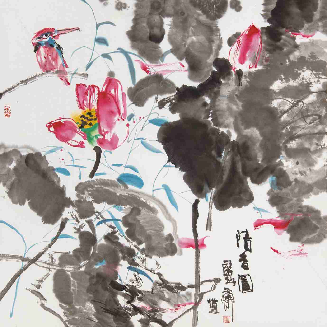 花青(花连喜),1957年出生于上海。自幼酷爱绘画艺术,专攻大写意花鸟画。现为中国美术家协会会员、上海市美术家协会会员、中国智永书画院常务理事、国家一级美术师、中国太湖书画院副院长。多次获得全国美术家协会举办的大型美展,并多次获得奖项。