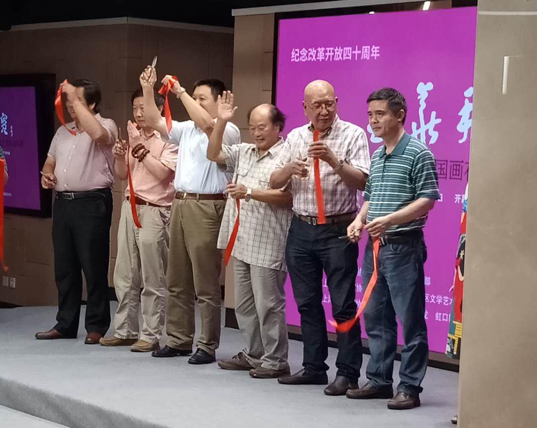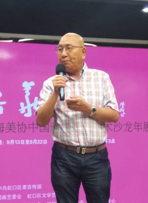 9月17日下午三点在海派文化中心举行开幕式,虹口区文联主席兼上海美协花鸟画沙龙主任陆健先生首先致开幕词,市美协油画艺委会主任兼花鸟画沙龙顾问黄阿忠老师和美协海墨画会主任兼沙龙顾问应鹤光老师在开幕式上讲话。