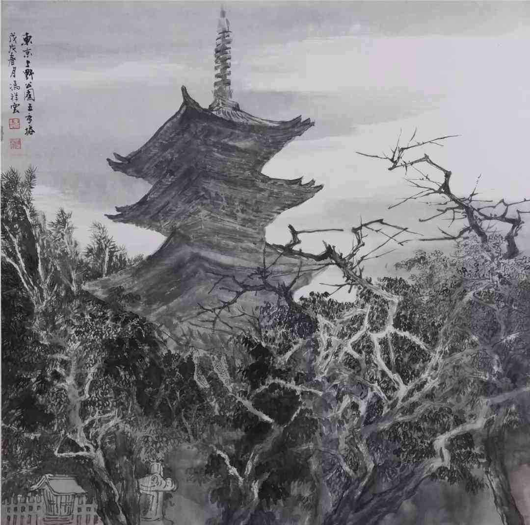 冯祥云 《东京上野公园五重塔》 50 x 50cm 纸本水墨 2018