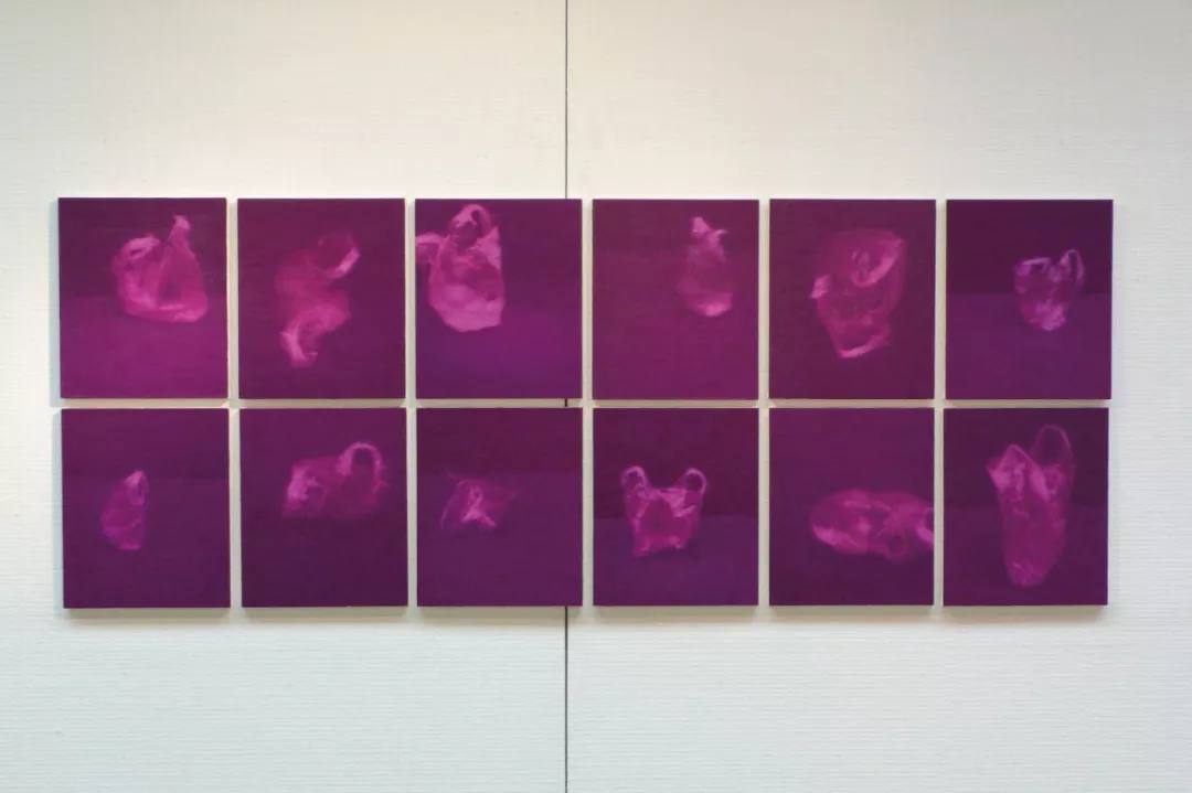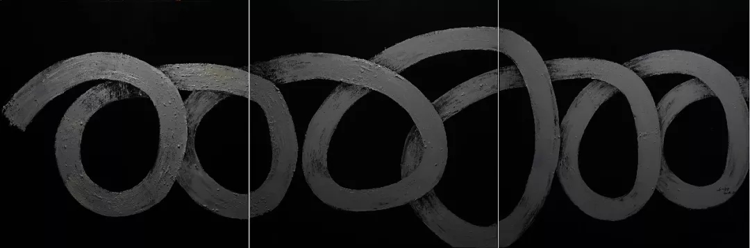 何惠忠 《通》 油画、布 综合材料 100 × 100cm x3 2018