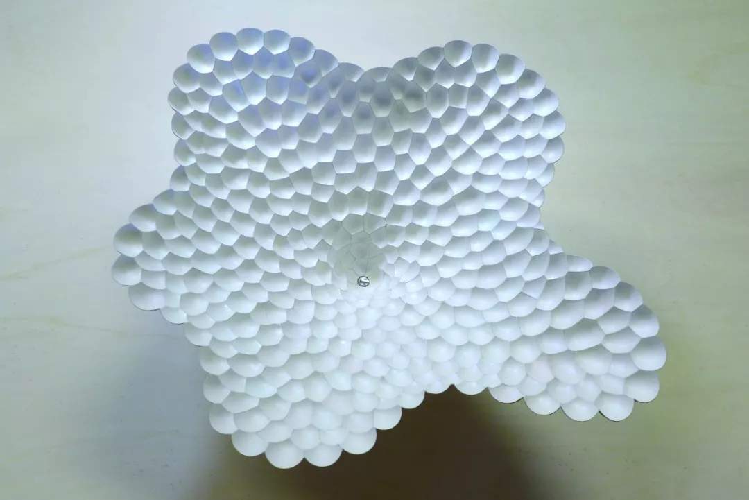 加藤真美 収縮した空間に卵型を押し拡げてみる 2018 立体 卵殻 和紙 ペイント 凸型鏡 縦26.5 x横61 x高61cm
