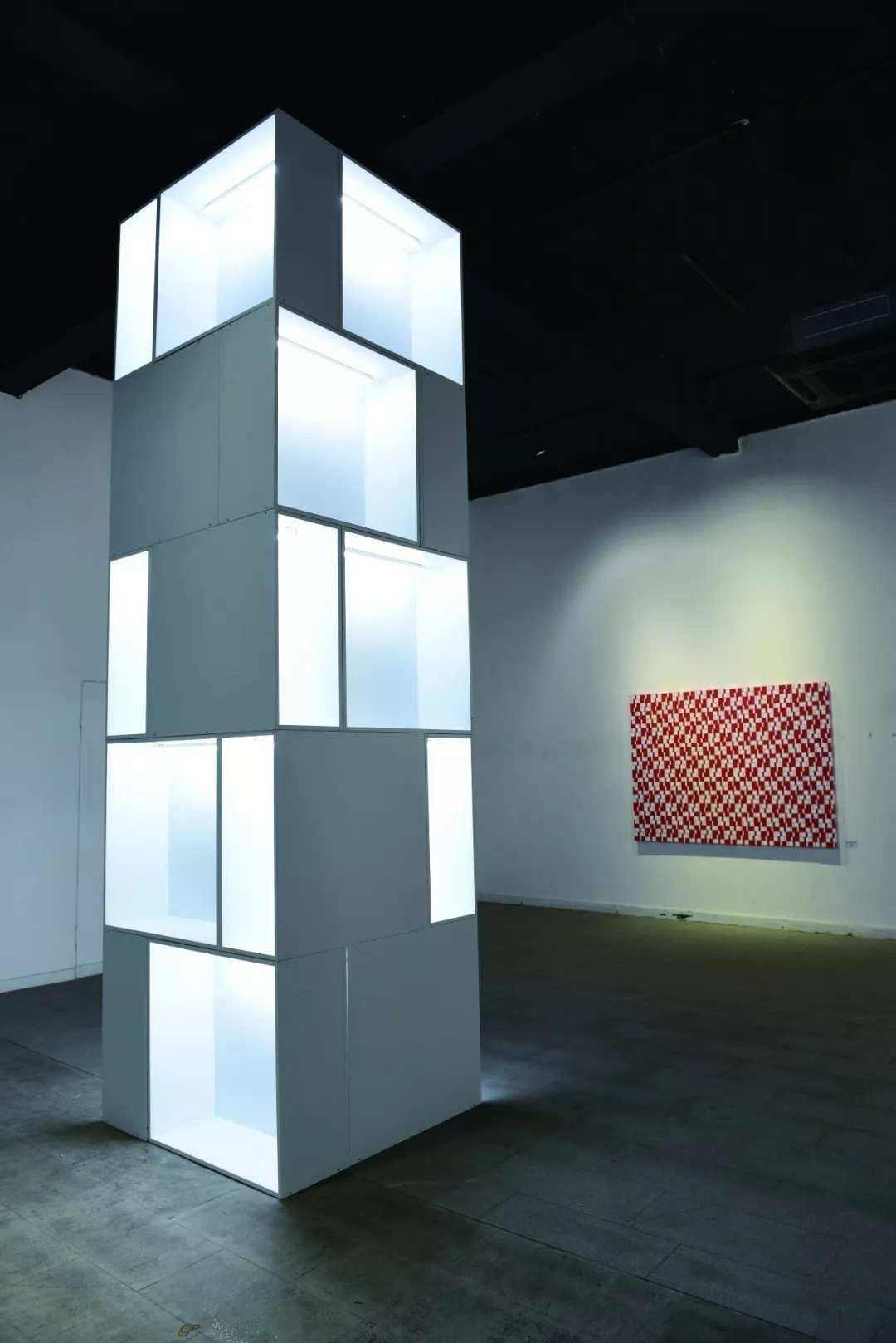中川猛 NEOZIGGURAT Ⅴ 2017 立体 合板 塗料 蛍光灯 W112× 112 × H400cm