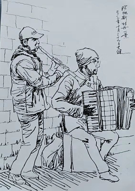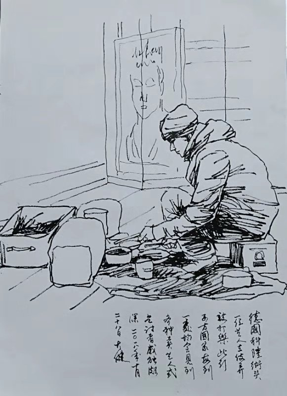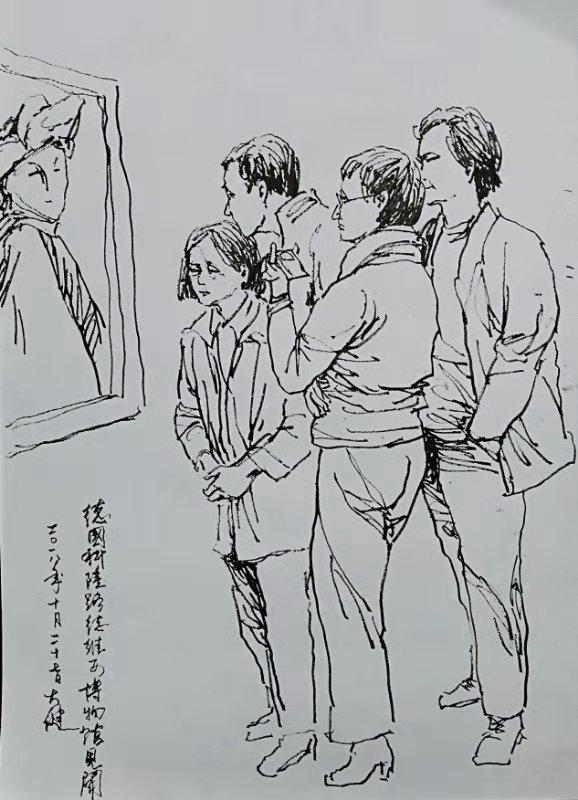 大健还不忘在旅途中忙中偷闲,为外国友人画人物速写并予以一一赠送,为中国文化的传播作出了积极的贡献。