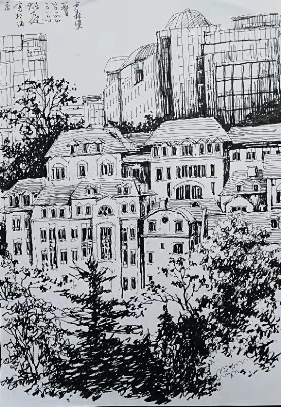 而有一天,大健还是来画画,谈笑却听不到了。模特摆好姿势,他还是拿起笔,但手中的笔似乎不那么听使唤了。休息时,他坐在椅子上,不说一句话,有时低头,打磕睡。下午,他画完一幅画就离开了画室。画友们陆陆续续地知道了他夫人生病住院的事。后来的每个星期六,他仍然来,但他会早回,因为要照顾生病的夫人和小孙子。这期间,他消瘦了许多,但他从未放弃过手中的画笔。我还是会源源不断地从他的微信中看到他的新作,他病愈中的夫人还会把他的画制做成精美可播放的小年糕影集。