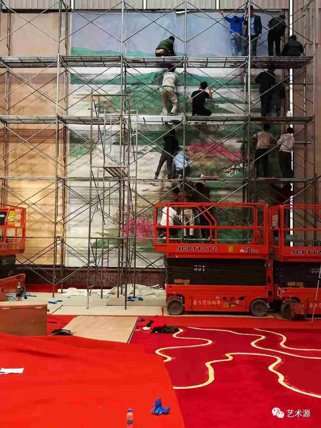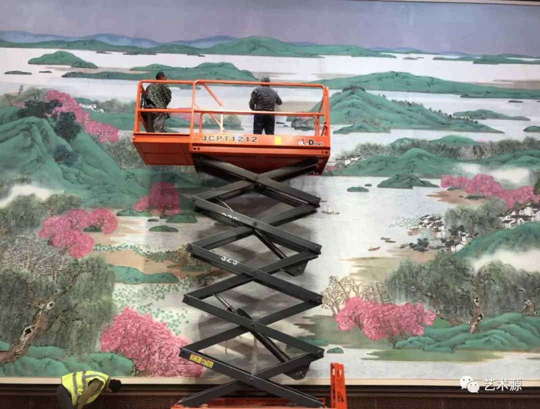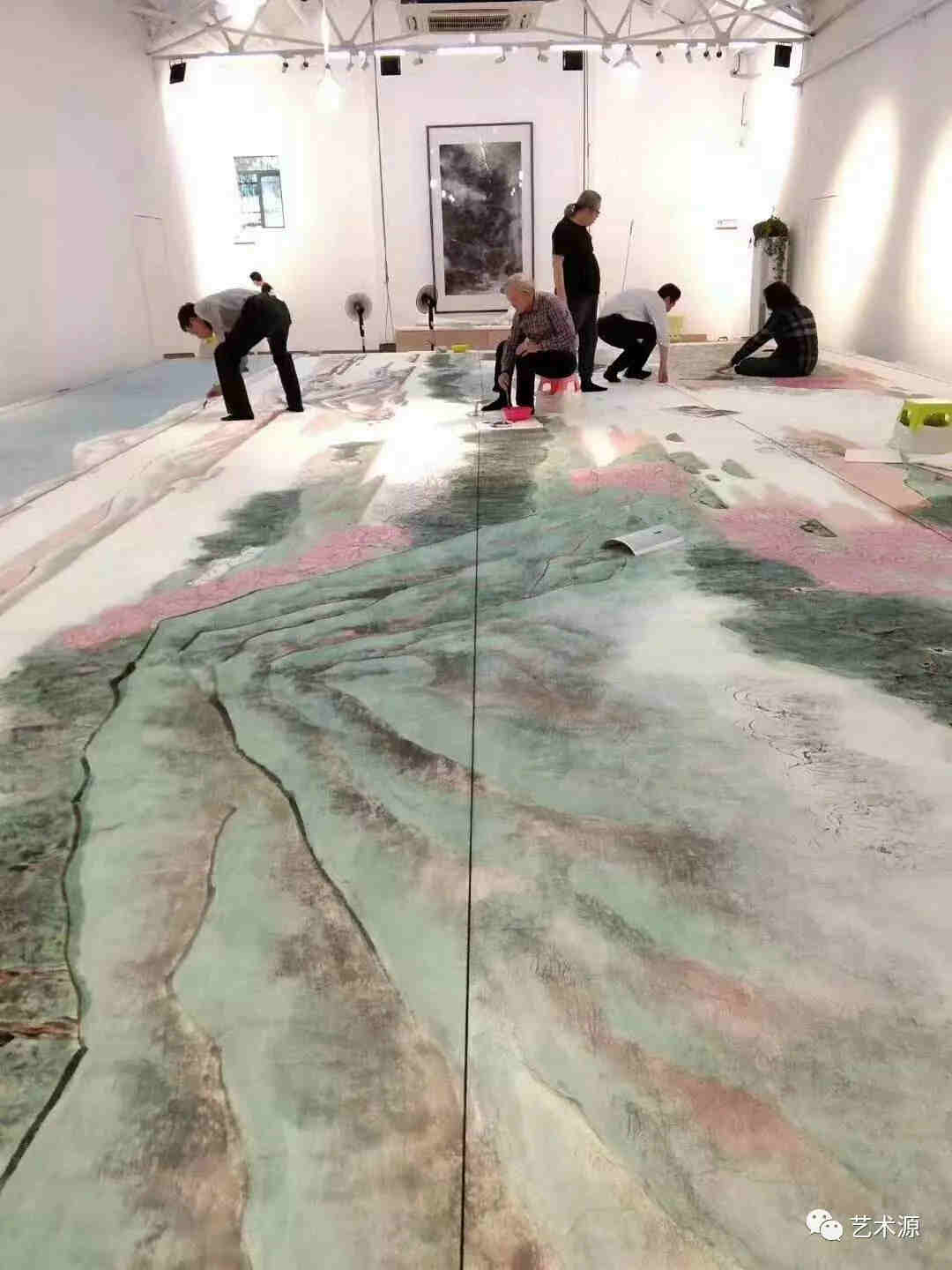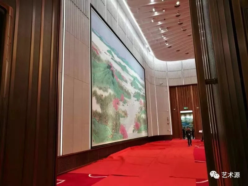 这是目前全国最大的中国画青绿山水作品,高784cm x 宽1310cm。作品由中国美协理事、上海市美协副主席陈琪、画家车鹏飞、画家江宏、画家汪家芳等4位艺术家合作精心创作。