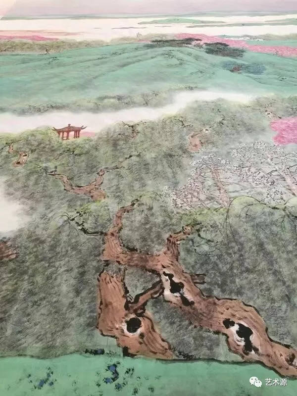 江南有取之不尽创作题材,作品着重采用传统平远构图,把江南水乡全景式展现在眼前,画面山连着水,水连着山,层层推进,层层叠叠,表现出山的秀色秀美,水的灵动灵气,让人把江南美景尽收眼底。