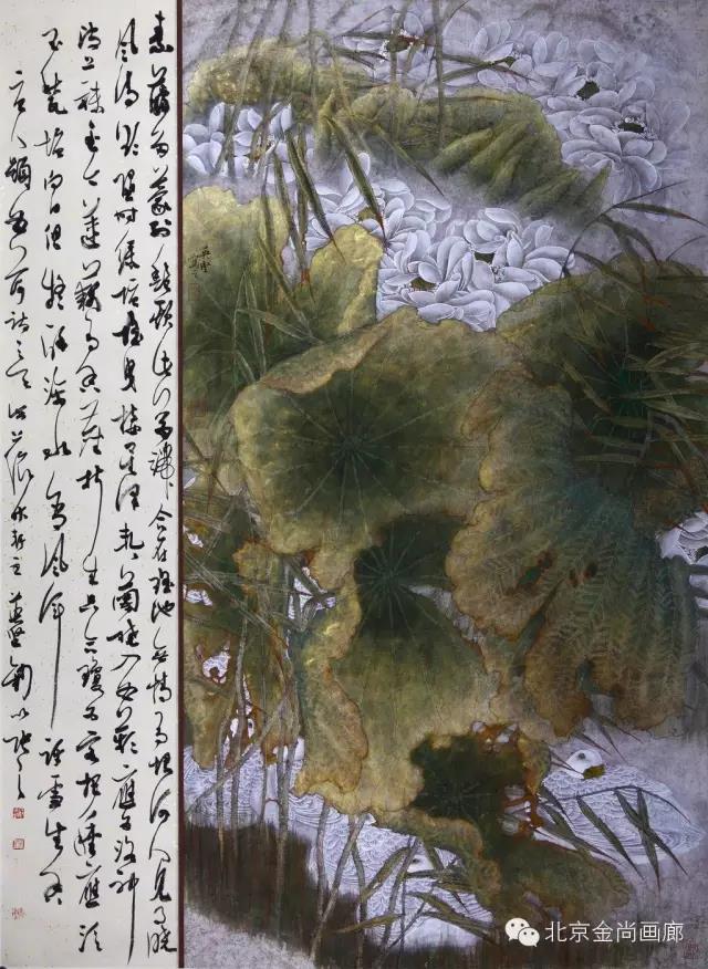 再看英坚近年所作大幅双钩写意,也强化了这种追求,突出了画面整体神韵的把握,作品气势宏大、境界开阔、重而明,密而透,既工而写,意韵两在。以上是英坚花鸟创作的最近阶段性小结。