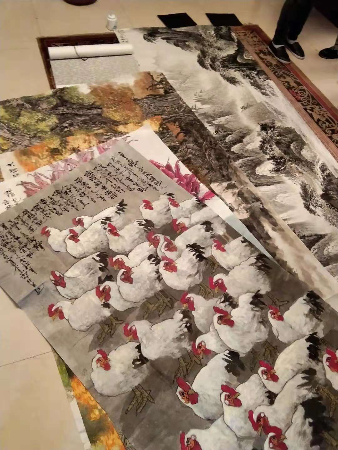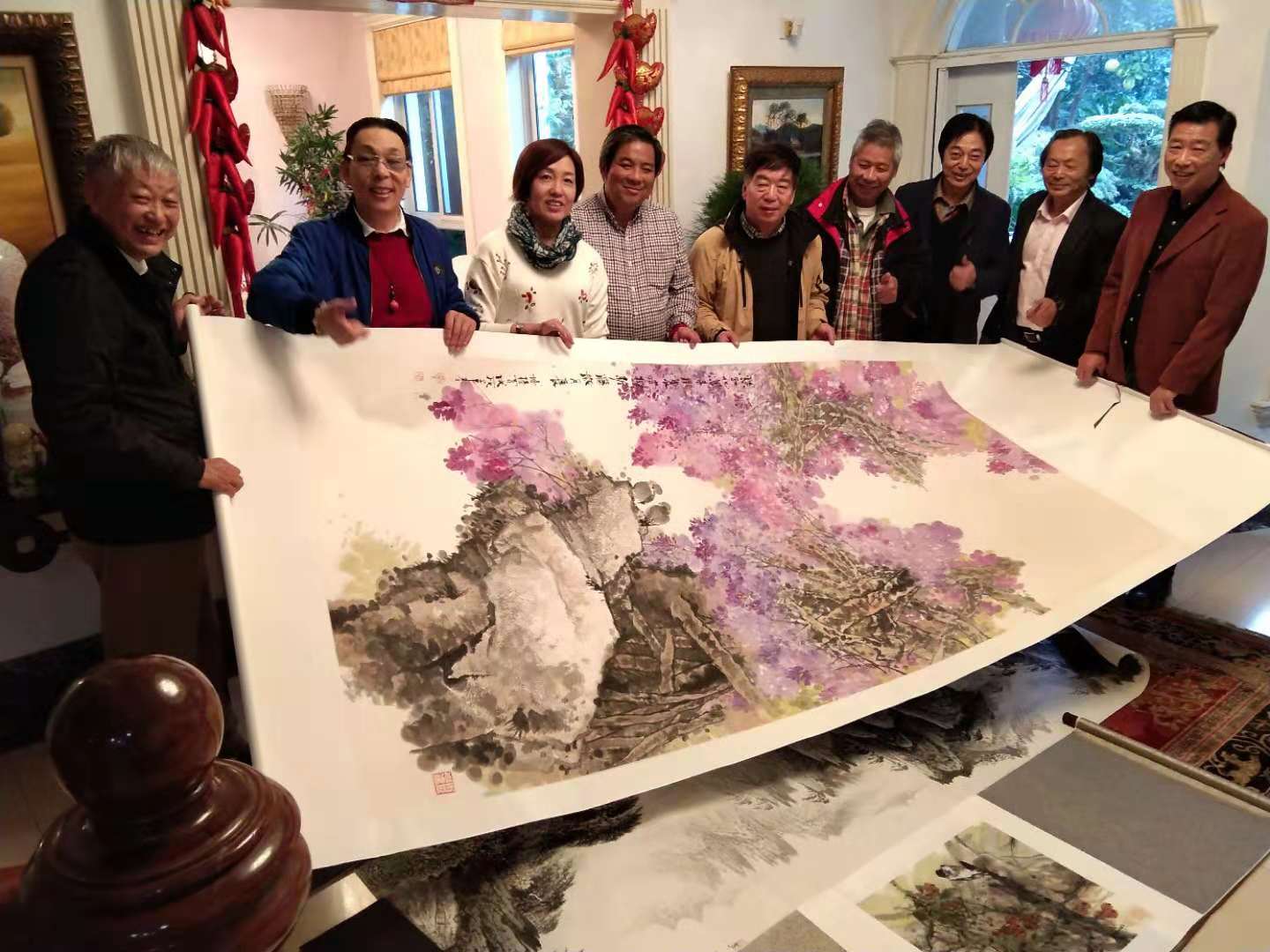 三十多年过去了,一九八四年的春天,上海外国语大学首届美术专业招了三个班级,这一届一个山水画班和两个花鸟画班级,三十多年来,同学们都在哪里?我们没有几位同学在联系,我先从网上找,张庭生在宁夏,葛禄生在四川,福建的董希源在上海建美术馆了,荻夕明在宜兴,俞木华在景德镇,陆春涛是大名人,现在非常的忙,我建了一个大学同学群,刚刚从外国回到上海的张培春,时差还没有倒过来,他说等不及了 ,他要见见几十年没有看到的同学,吴派传人施作雄今天从南通过来,潘永民昨天刚刚联系到,今天准时过来,大师兄周银跟和师妹华静结伴而来,山水画家胡爱民,原来在电视台工作的吕纯览,正在东华大学教课的史新民已经在路上了,张雷也在路上,我们的山水画家周立德早就来了,张培春的弟弟企业家张培桦先生一家,热情的招待着我们每一位到来的同学,文人就是文人,大家一到就切磋画艺,观摩作品,感情融合到极致,就像冬天里的一把火,我夏建峰是同学里的小弟弟,乐意为同学们服务,为明年上海外国语大学美术班35周年画展做筹备工作。