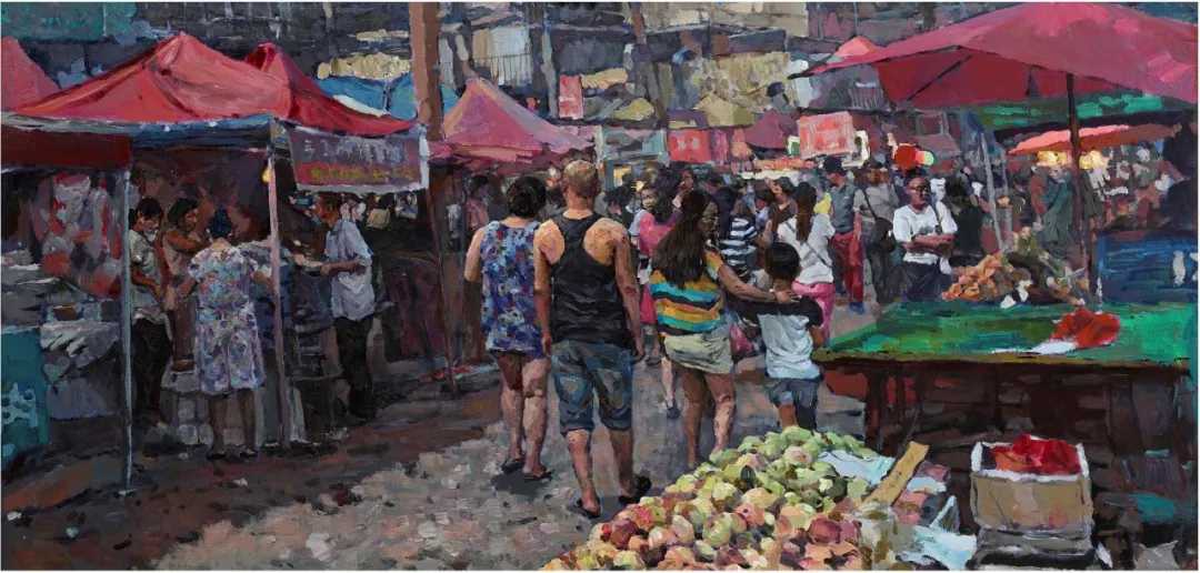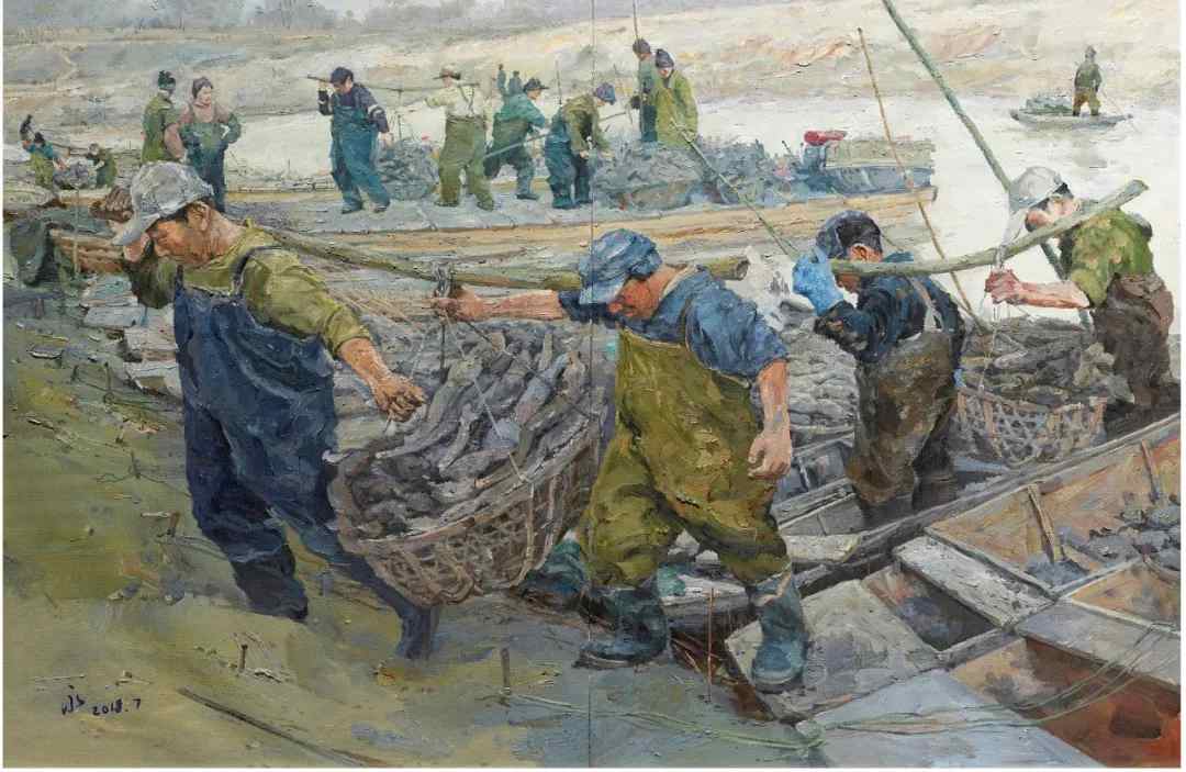 随着国家美术事业的繁荣发展,近些年来油画艺术创作也取得了长足发展,本次展览一定程度上展示了新时代油画艺术的创作生态,在作品精神品质和语言品质上都给予了足够的关注。扎根人民、反映时代、贴近生活可谓是展览的突出特点,表现新时代、新生活进程中人民精神面貌和生活状态的作品占入选总数的近46%,描绘普通劳动者,颂扬匠人精神成为美术家热切表达的主题,如《收青稞》《丰收》《窑河采藕人》《明天是小年》《夕阳》《守望者系列11—胡琴匠人》等。此外展现民族文化的《侗家橱窗—二》《商场》等、纪录非遗传承的《陇上曲系列之23》《对话•空间11》等、表现丝路精神的《丝路印象之敦煌》《丝路驼铃》等、怀念乡韵故里的《童年记忆》《即将消逝的风景》等对于民族精神、传承精神和时代精神的表达都体现了展览的精神品质。