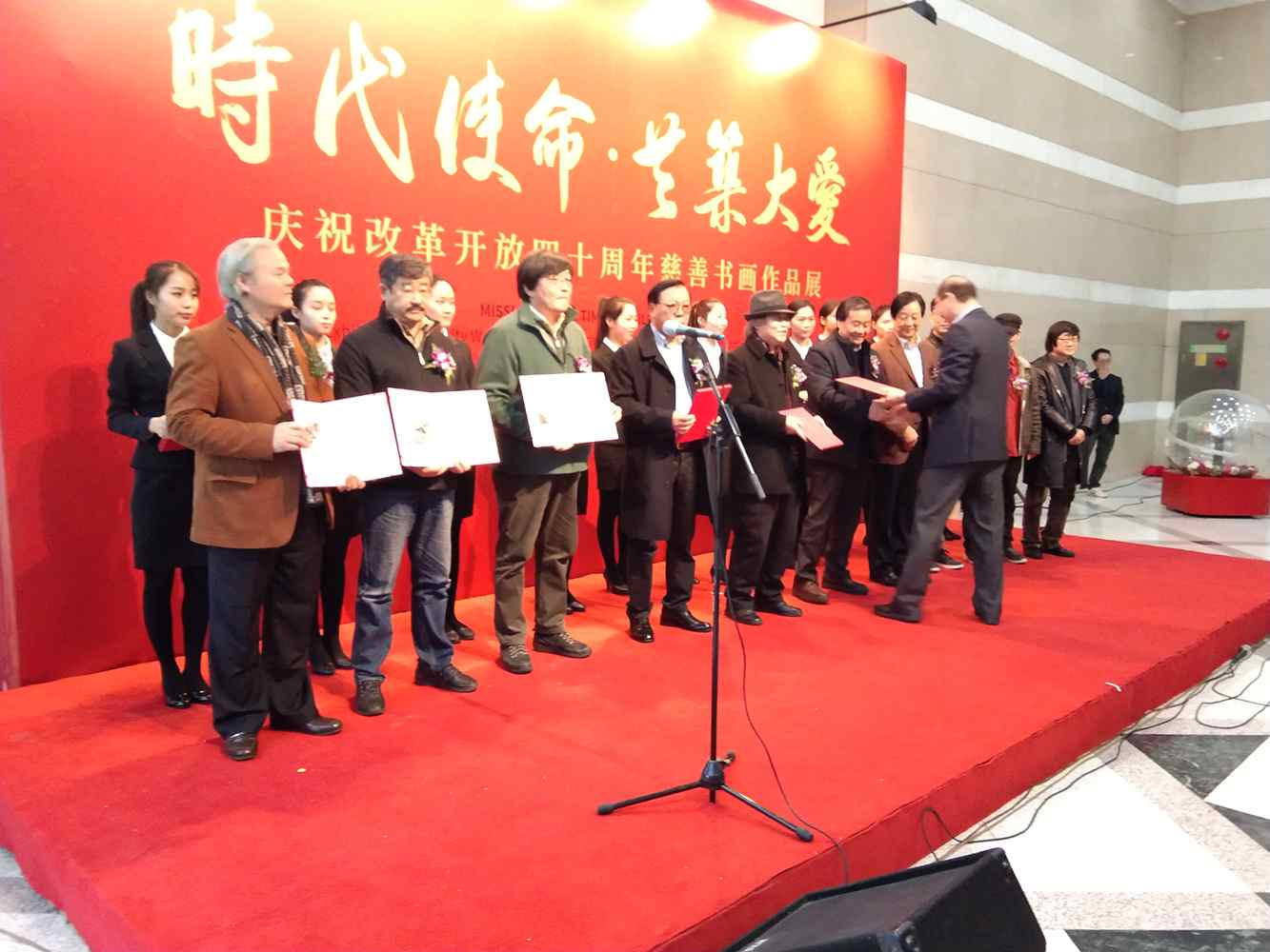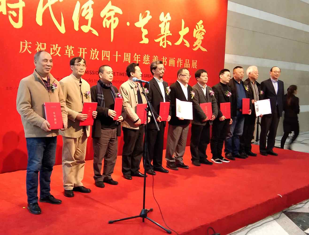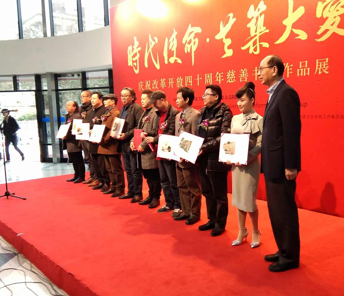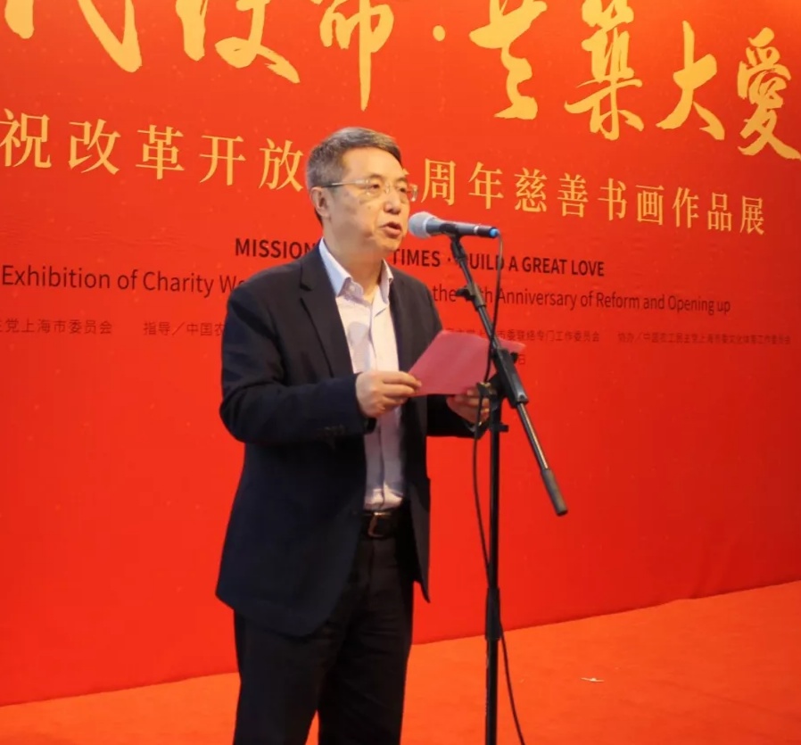开幕式由农工党上海市委副主委陈芳源同志主持,农工党上海市委主委蔡威致辞,并且为50位画家颁发了收藏证书,在开幕式上发言的有农工党中央书画院常委副院长杨家永、农工党上海市委秘书长王晓东、安徽省美协名誉主席张松。