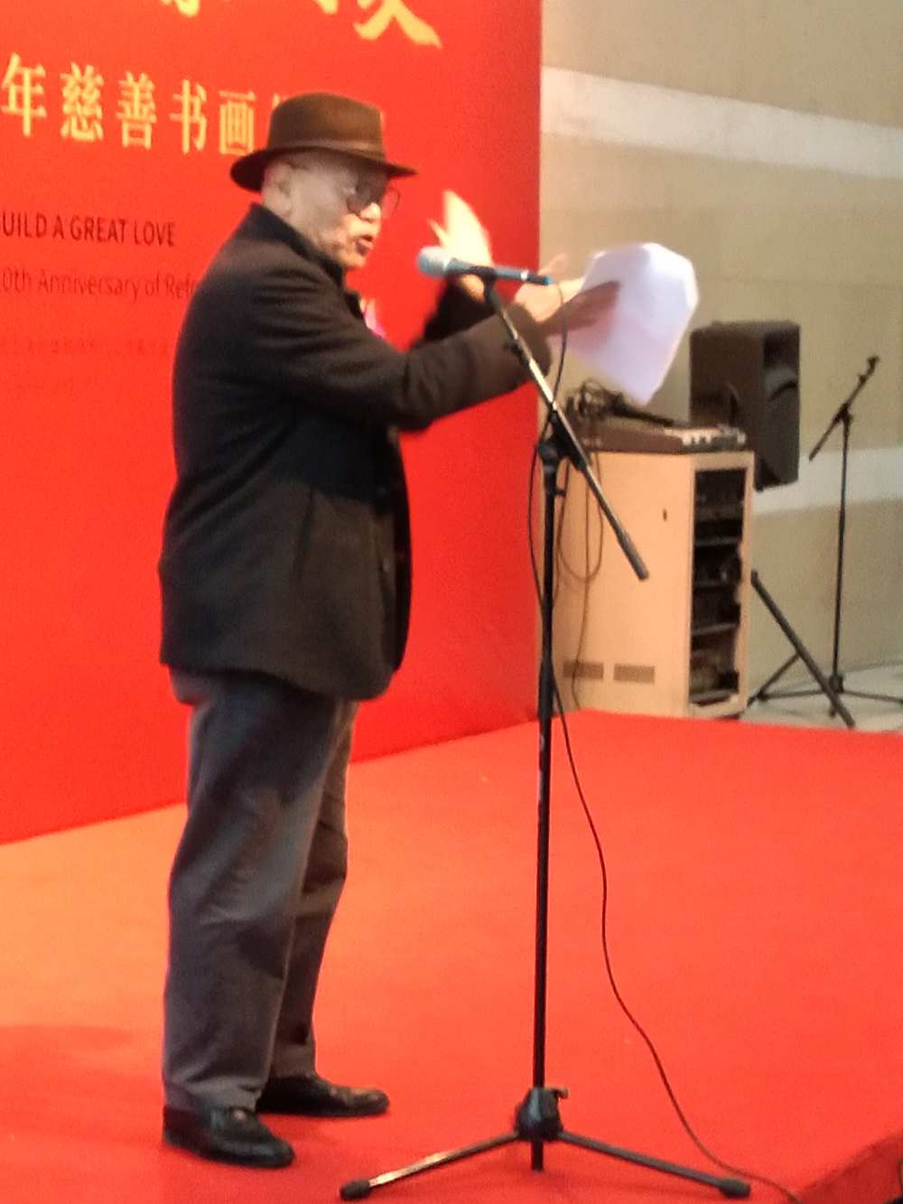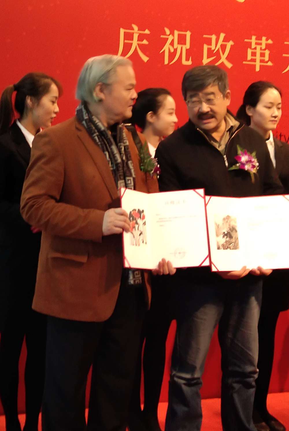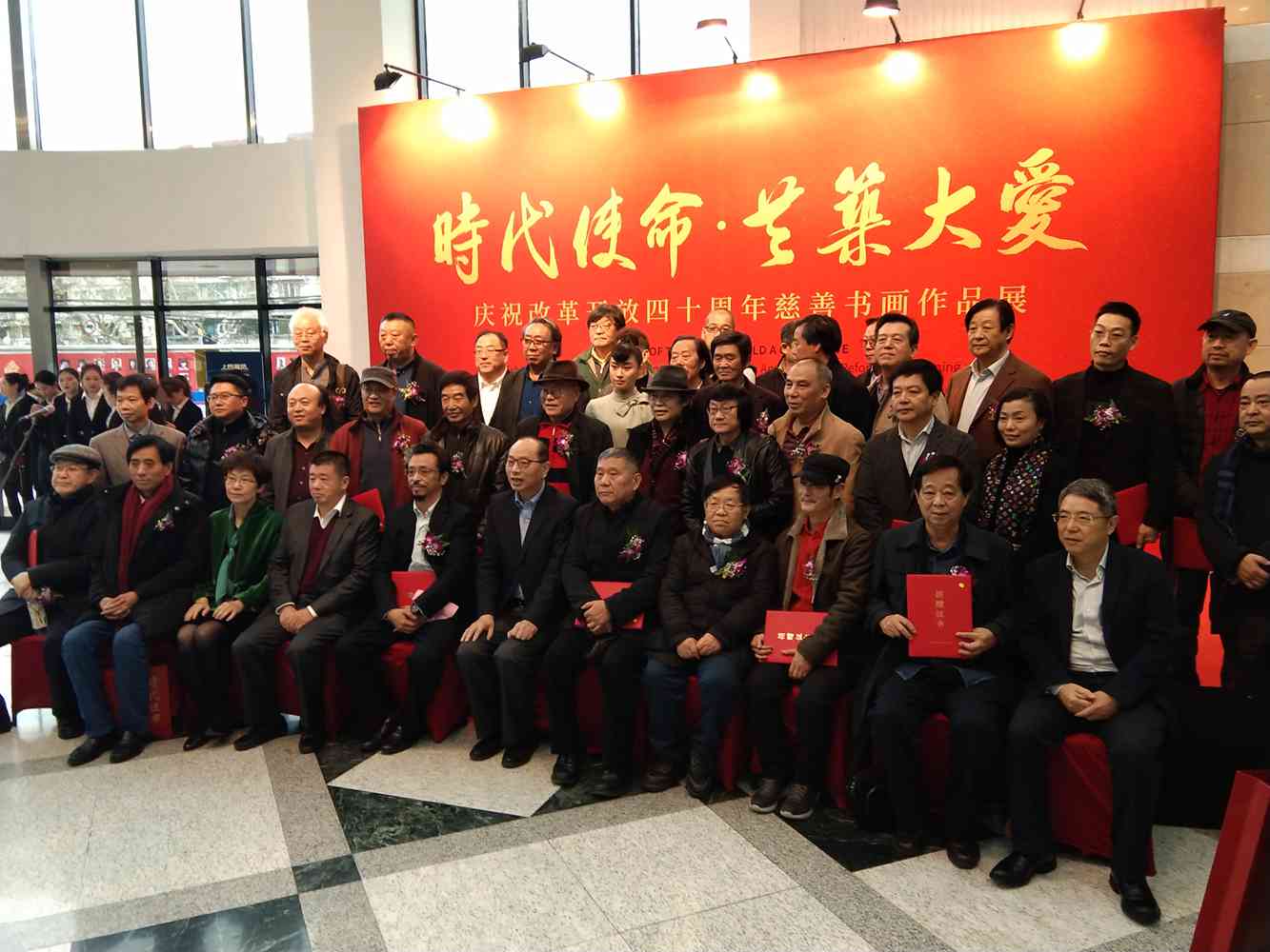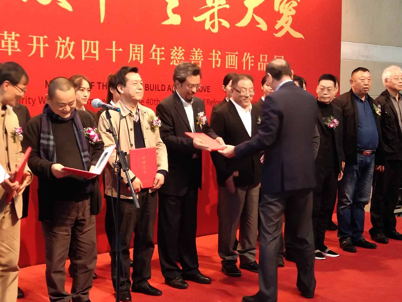 开幕式由农工党上海市委副主委陈芳源同志主持,农工党上海市委主委蔡威致辞,并且为50位画家颁发了收藏证书,在开幕式上发言的有农工党中央书画院常委副院长杨家永、农工党上海市委秘书长王晓东、安徽省美协名誉主席张松。