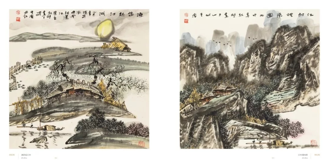江村烟岚图 68cm×68cm