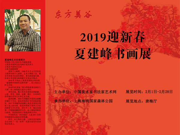 由中国美术家书法家艺术网主办,上海海湾国家森林公园承办的【2019迎新春夏建峰书画展】于2019年2月1日至28日在海湾国家森林公园唐梅厅画廊举行。