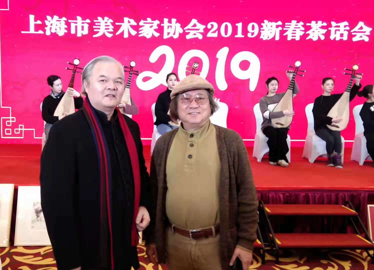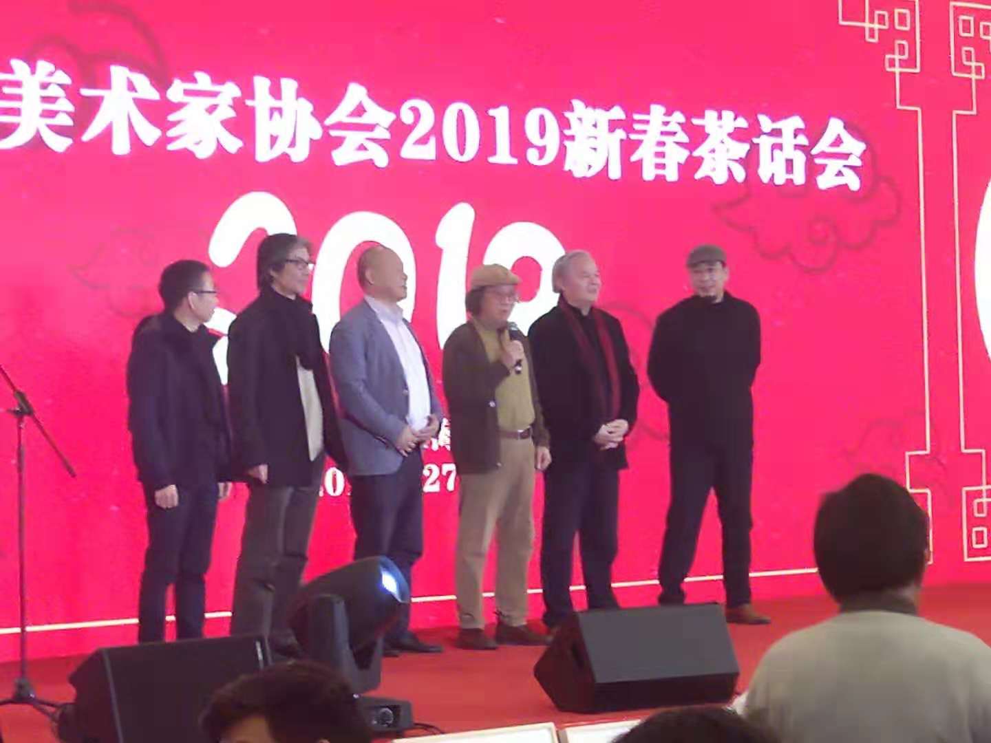 茶话会由市美协副秘书长丁设主持,美协主席郑辛遥首先讲话,市文联驻会副主席韩陈青代表文联党组书记尤存讲话。