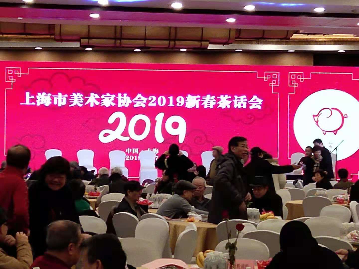来参加茶话会的新老艺术家们,欢聚一堂,茶话会内容丰富,首先有新当选的主席团六位画家,分别祝新春,祝贺语,还有老画家的作品作为奖品摸奖,有戏剧演出等。