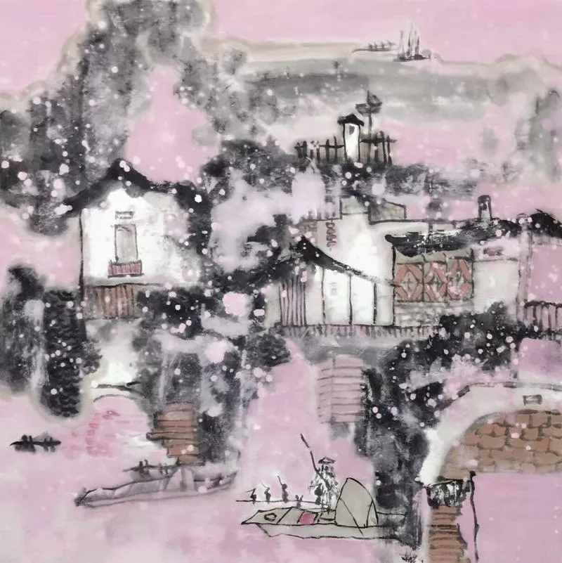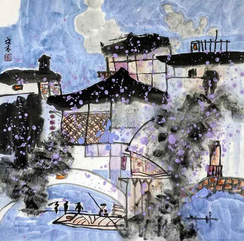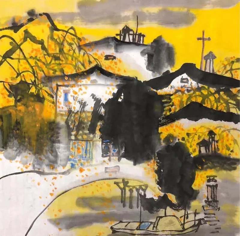 《墨韵水乡》(纸本设色68cm×68cm)