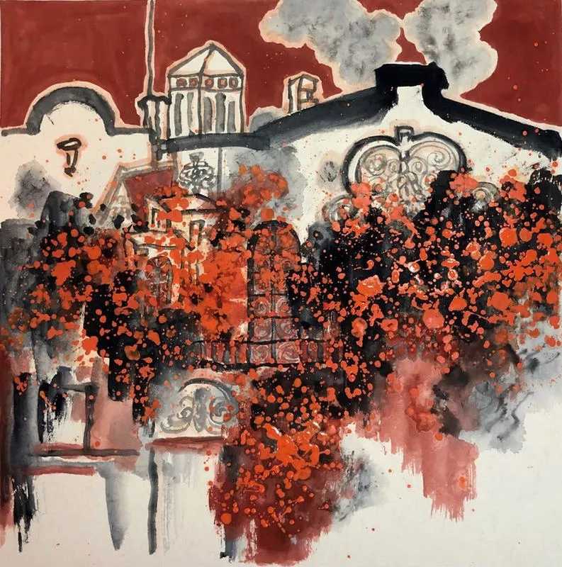 这些作品中,不仅运用了中国画的传统笔墨技法,更融入了很多色彩的表达,从具象到抽象,从提炼到重组,力图表现生活多彩的一面,大美的一面。
