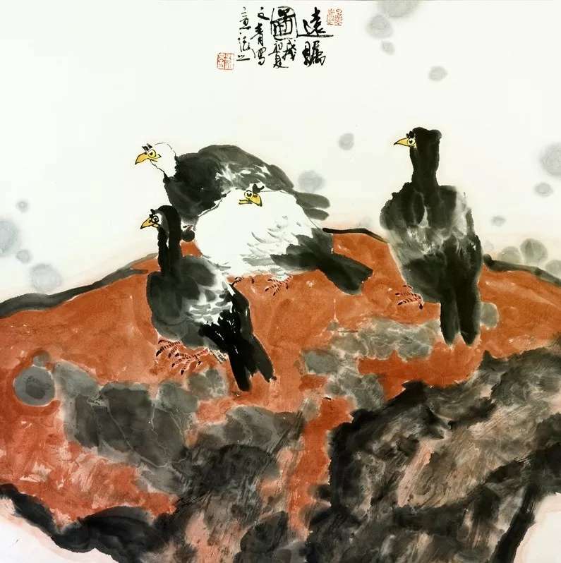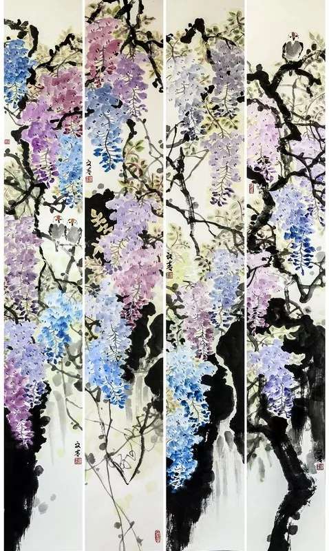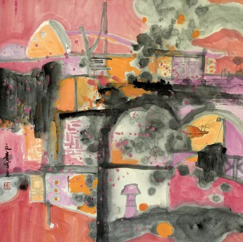 楼文青老师画风大胆自由,跳出了对物象真实的追求,在具象与抽象之间,在墨与色的碰撞间,赋予了作品更大的空间和张力,其独特的艺术语言给传统的中国画注入了新的生命力。其艺术表现,充分体现了主观净化之后的重组、抽象和概括,真实地表达了作者对生活的激情与感悟,主客观相互沁润,可谓天人合一。