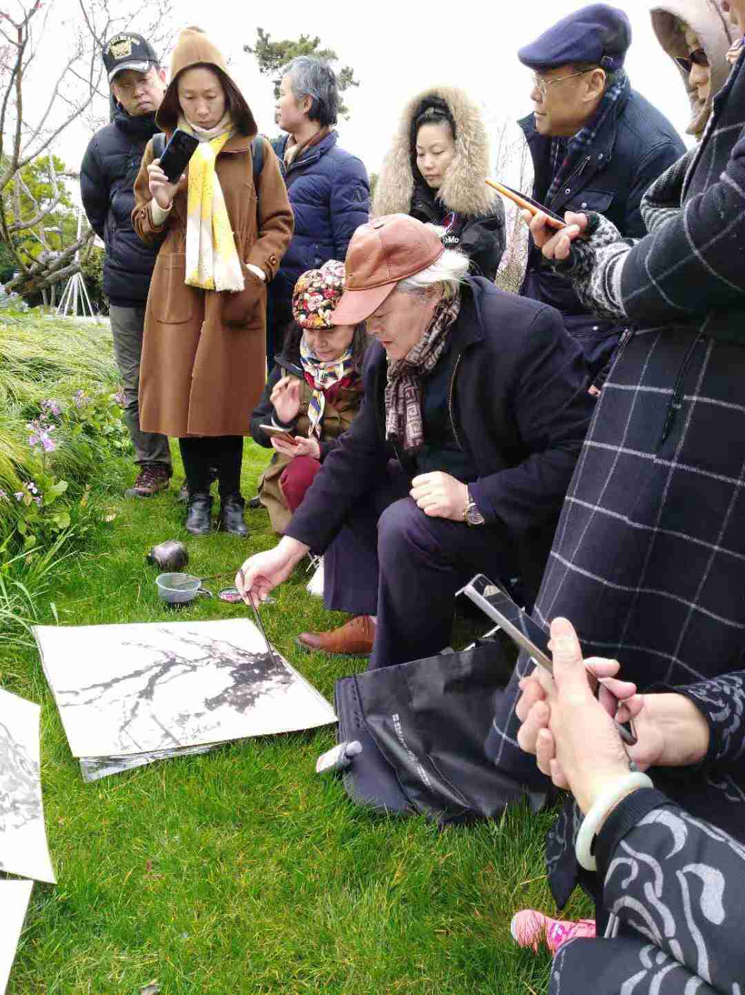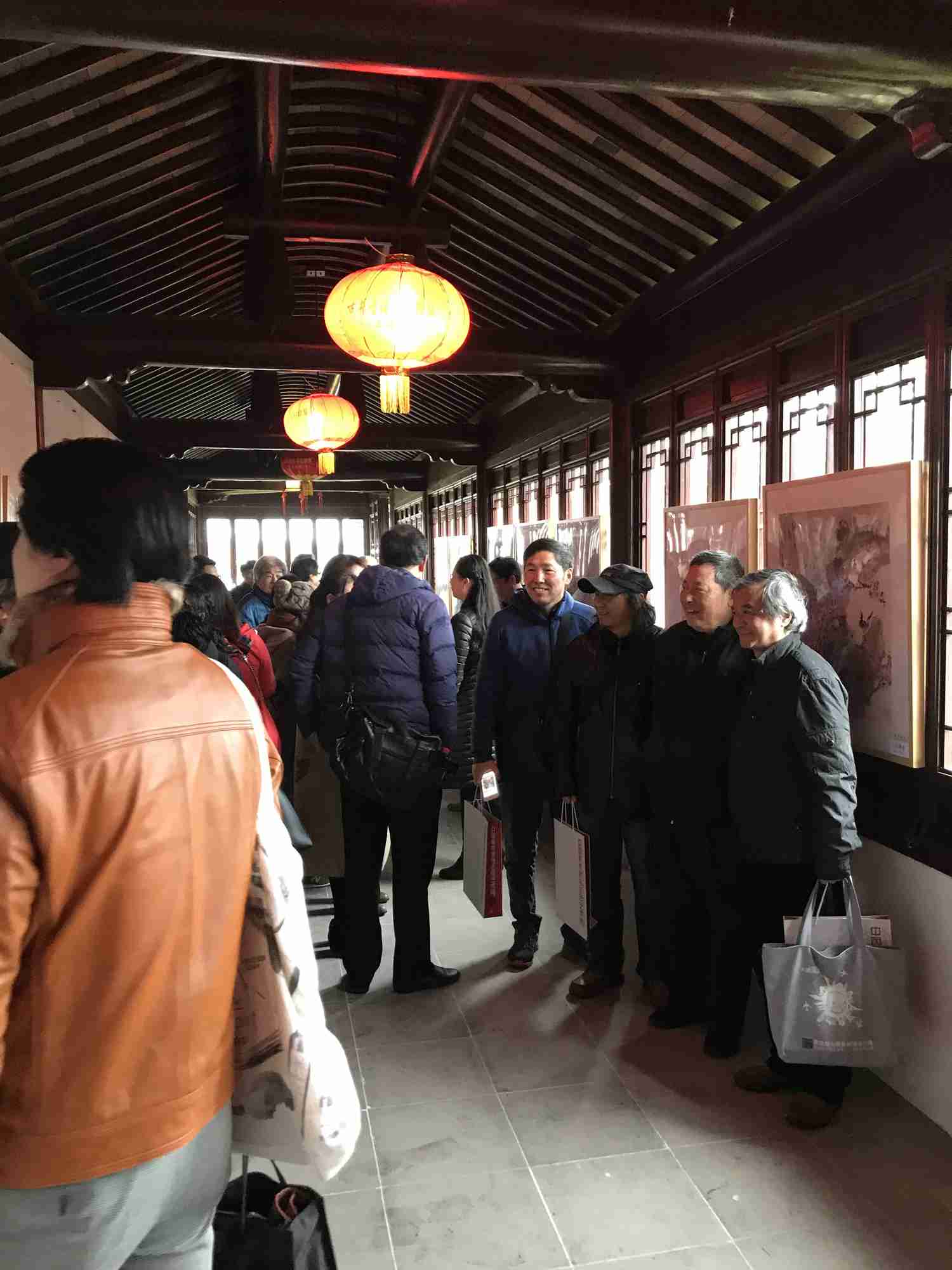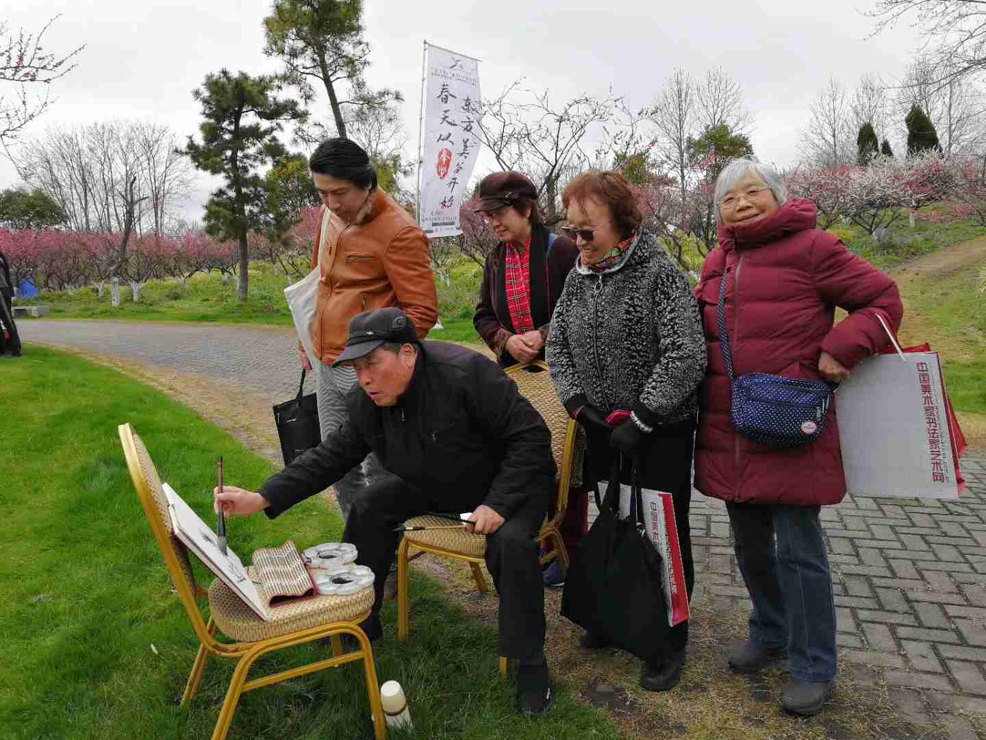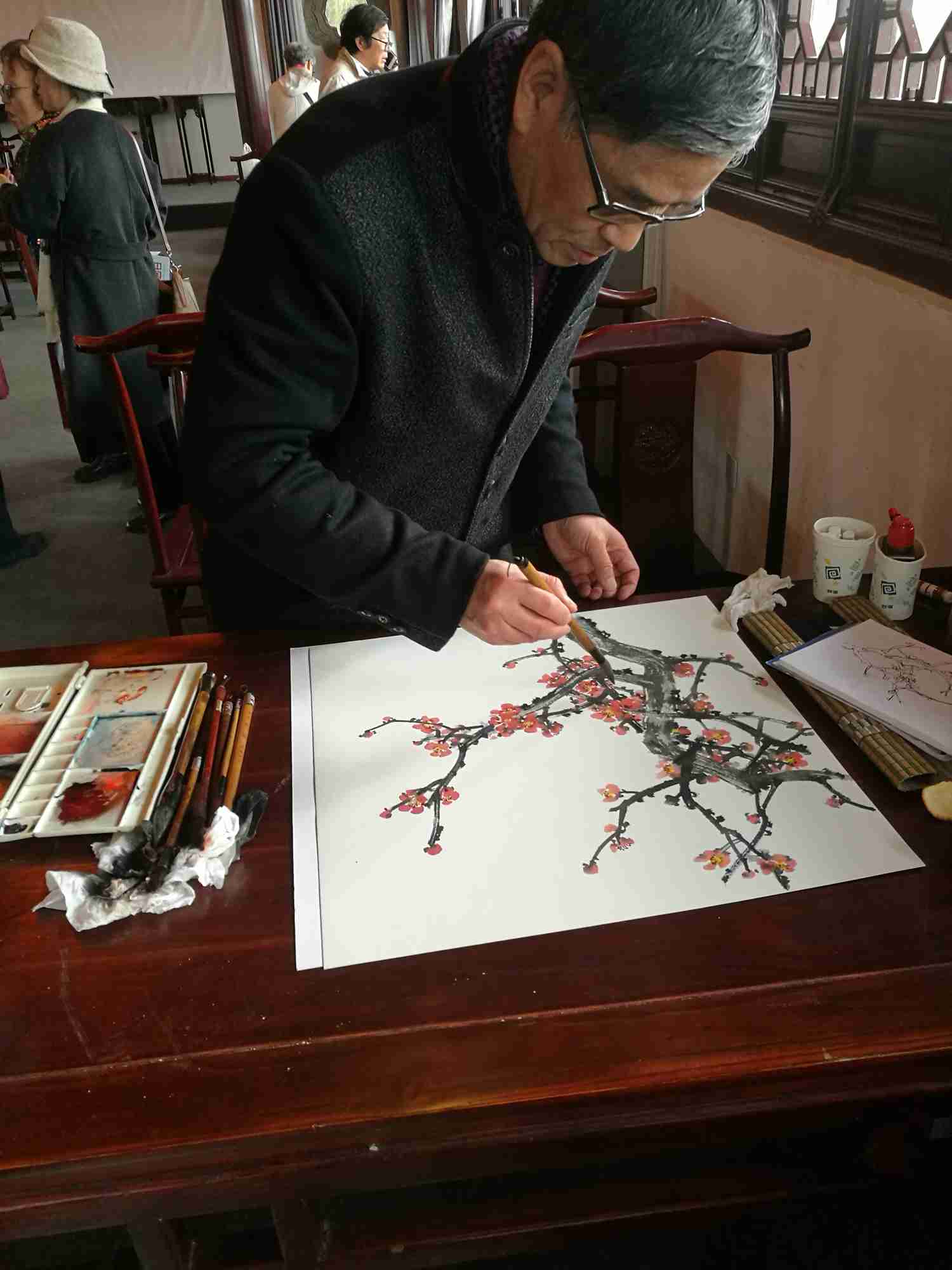 三月十四日早晨,天还下着雨,上午十点半,雨停了,上海名家梅花书画作品邀请展开幕式准点开幕。来自市区一百多位画家来到沙龙与虹口美协的创作基地奉贤海湾国家森林公园的唐梅厅画廊,一起参加开幕式活动。参加开幕式和写生活动的领导与贵宾有虹口区文联主席陆健,奉贤区文联主席瞿建国,著名画家杨正新,上海美协中国画院艺委会主任韩硕,上海市美协副主席陈琪,上海市书协副主席晁玉奎,上海市美协油画艺委会主任黄阿忠,上海市美协海墨画会会长应鹤光,上海市政协书画院副院长张培基,以及上海美协花鸟画艺术沙龙负责人余仁杰、夏建峰、余石等。这次活动总策划是夏建峰先生。首先由虹口区文联陆健主席祝开幕词,市书协副主席晁玉奎,市美协副主席陈琪,市美协油画艺委会主任黄阿忠分别讲话,最后由市美协中国画艺委会韩硕主任,宣布画展开幕。画家们与前来看展的市民在展厅中一同欣赏艺术与大自然相结合的美好。感受在艺术家的笔墨下呈现出的梅花的冷艳清绝的傲骨风姿。