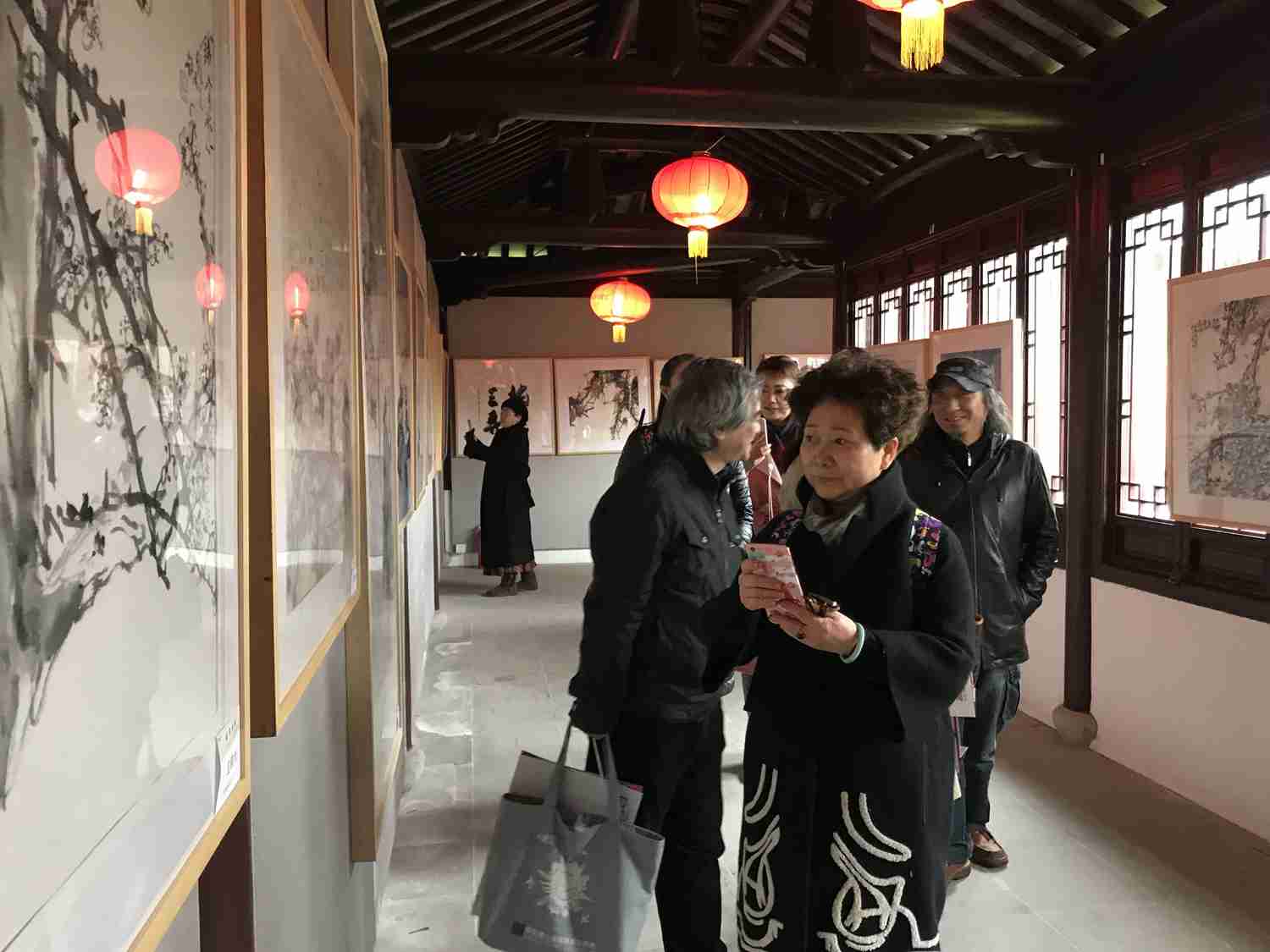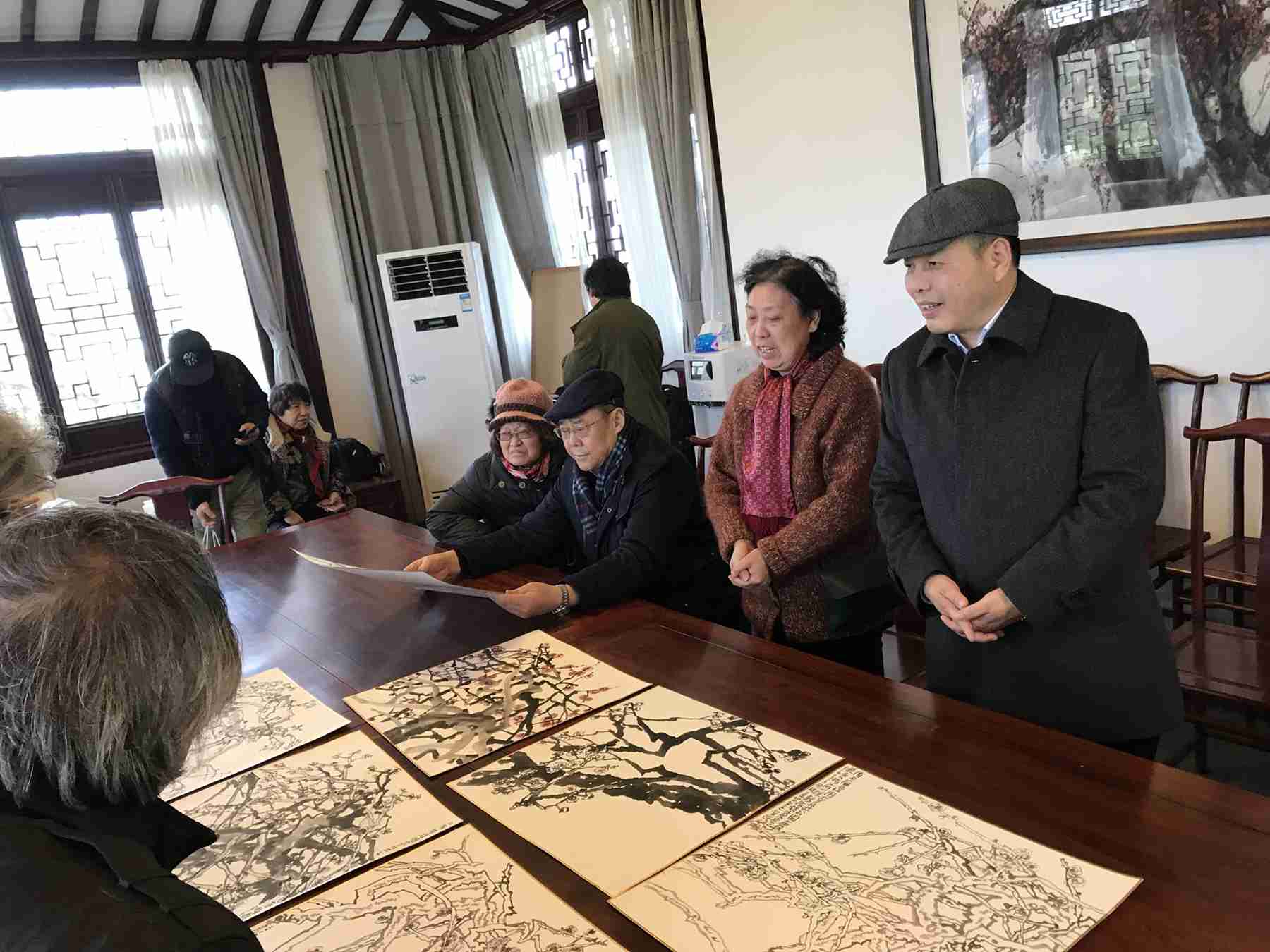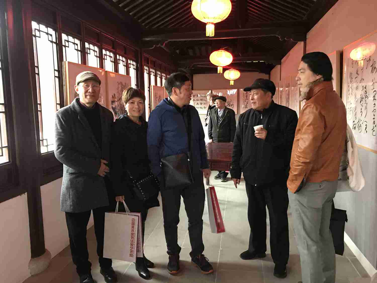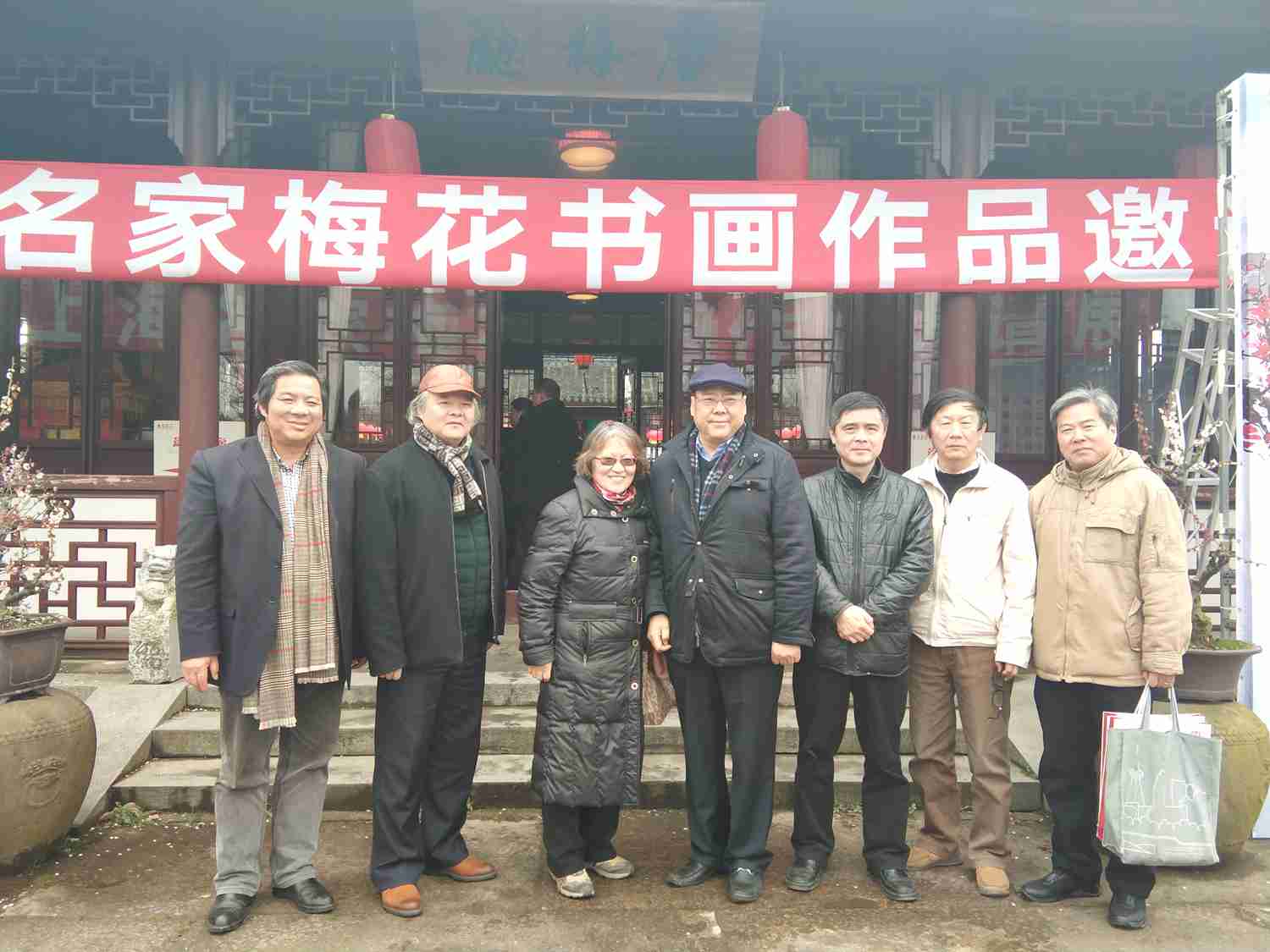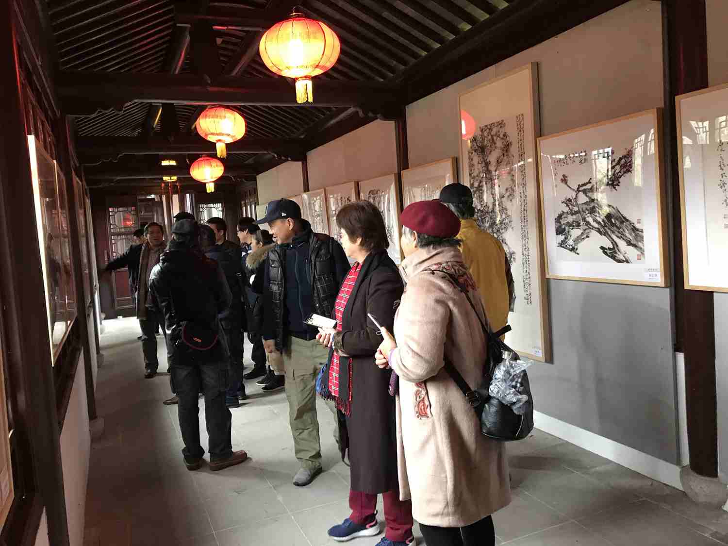 三月十四日早晨,天还下着雨,上午十点半,雨停了,上海名家梅花书画作品邀请展开幕式准点开幕。来自市区一百多位画家来到沙龙与虹口美协的创作基地奉贤海湾国家森林公园的唐梅厅画廊,一起参加开幕式活动。参加开幕式和写生活动的领导与贵宾有虹口区文联主席陆健,奉贤区文联主席瞿建国,著名画家杨正新,上海美协中国画院艺委会主任韩硕,上海市美协副主席陈琪,上海市书协副主席晁玉奎,上海市美协油画艺委会主任黄阿忠,上海市美协海墨画会会长应鹤光,上海市政协书画院副院长张培基,以及上海美协花鸟画艺术沙龙负责人余仁杰、夏建峰、余石等。这次活动总策划是夏建峰先生。首先由虹口区文联陆健主席祝开幕词,市书协副主席晁玉奎,市美协副主席陈琪,市美协油画艺委会主任黄阿忠分别讲话,最后由市美协中国画艺委会韩硕主任,宣布画展开幕。画家们与前来看展的市民在展厅中一同欣赏艺术与大自然相结合的美好。感受在艺术家的笔墨下呈现出的梅花的冷艳清绝的傲骨风姿。