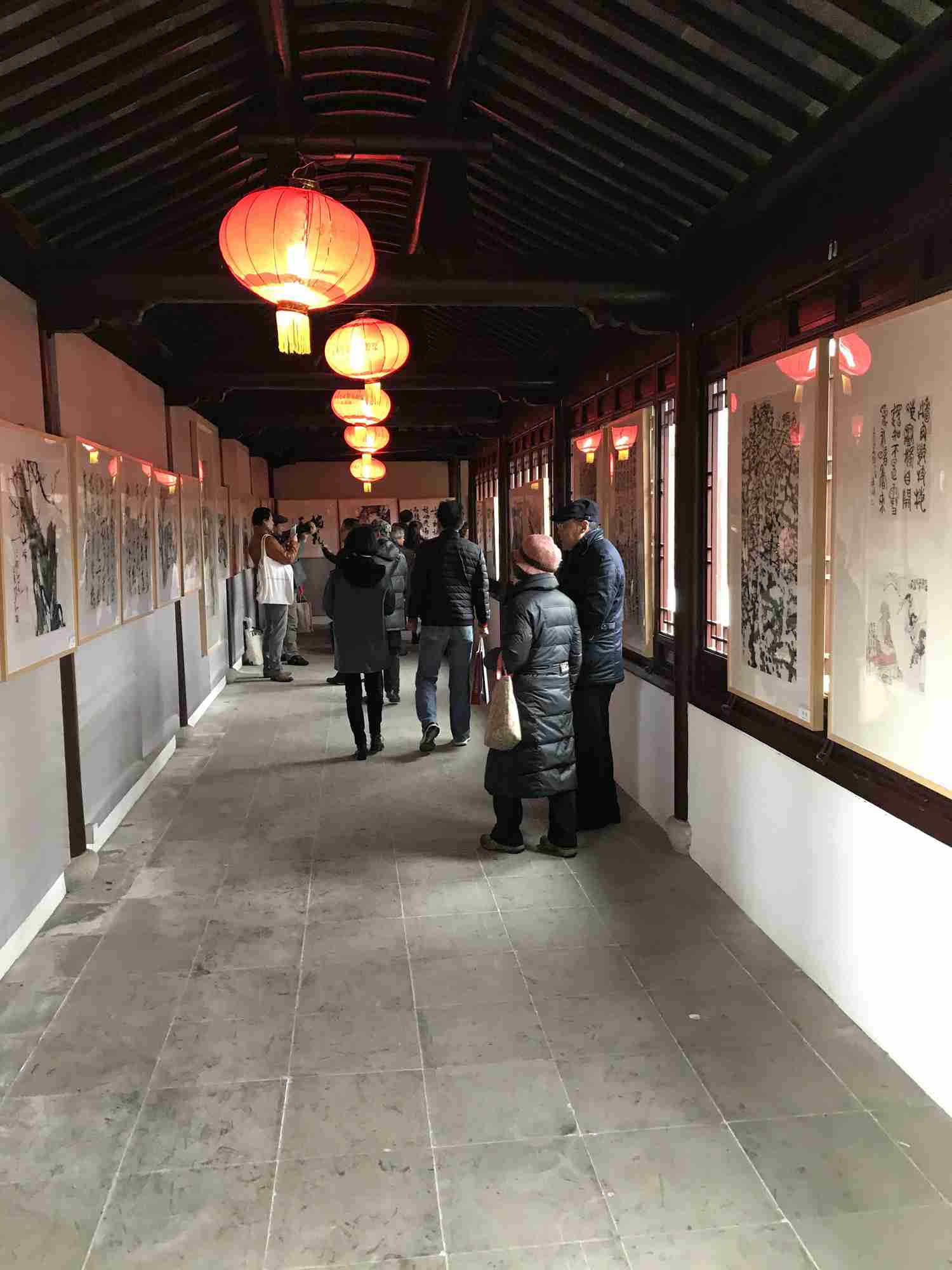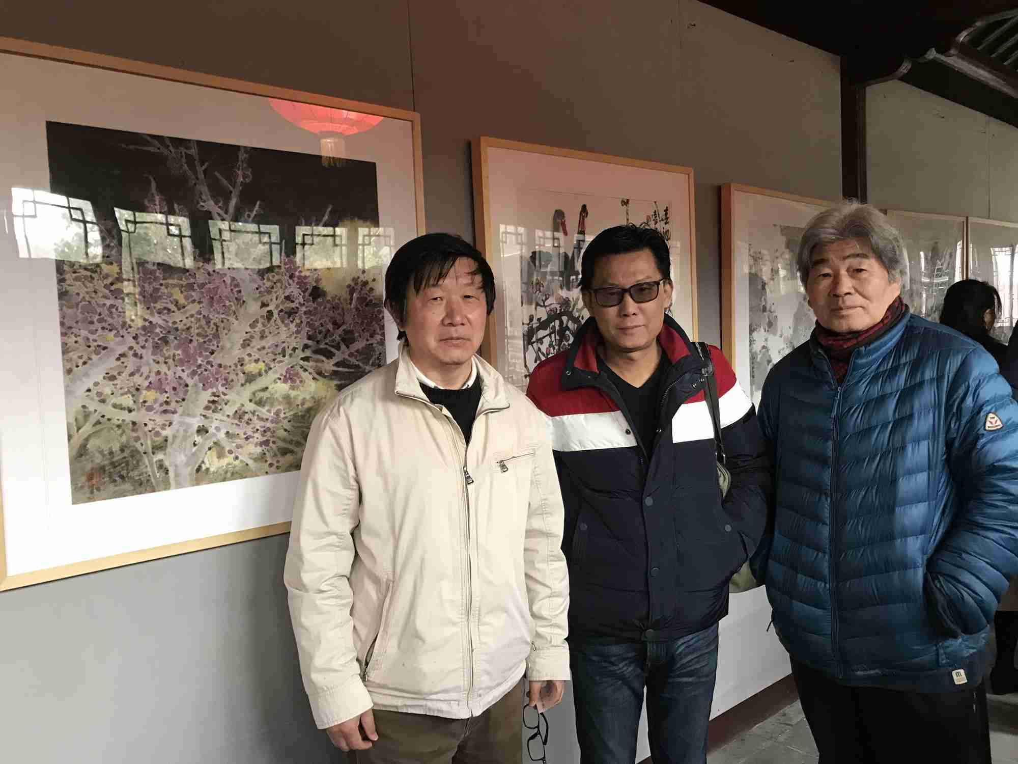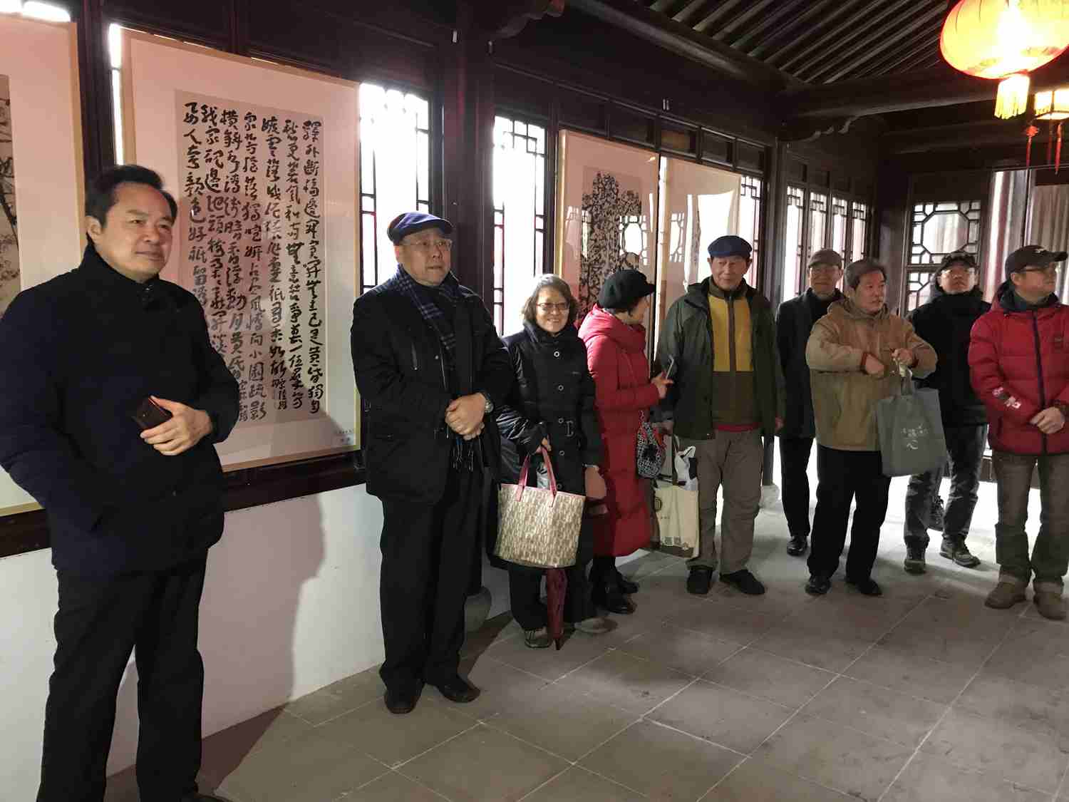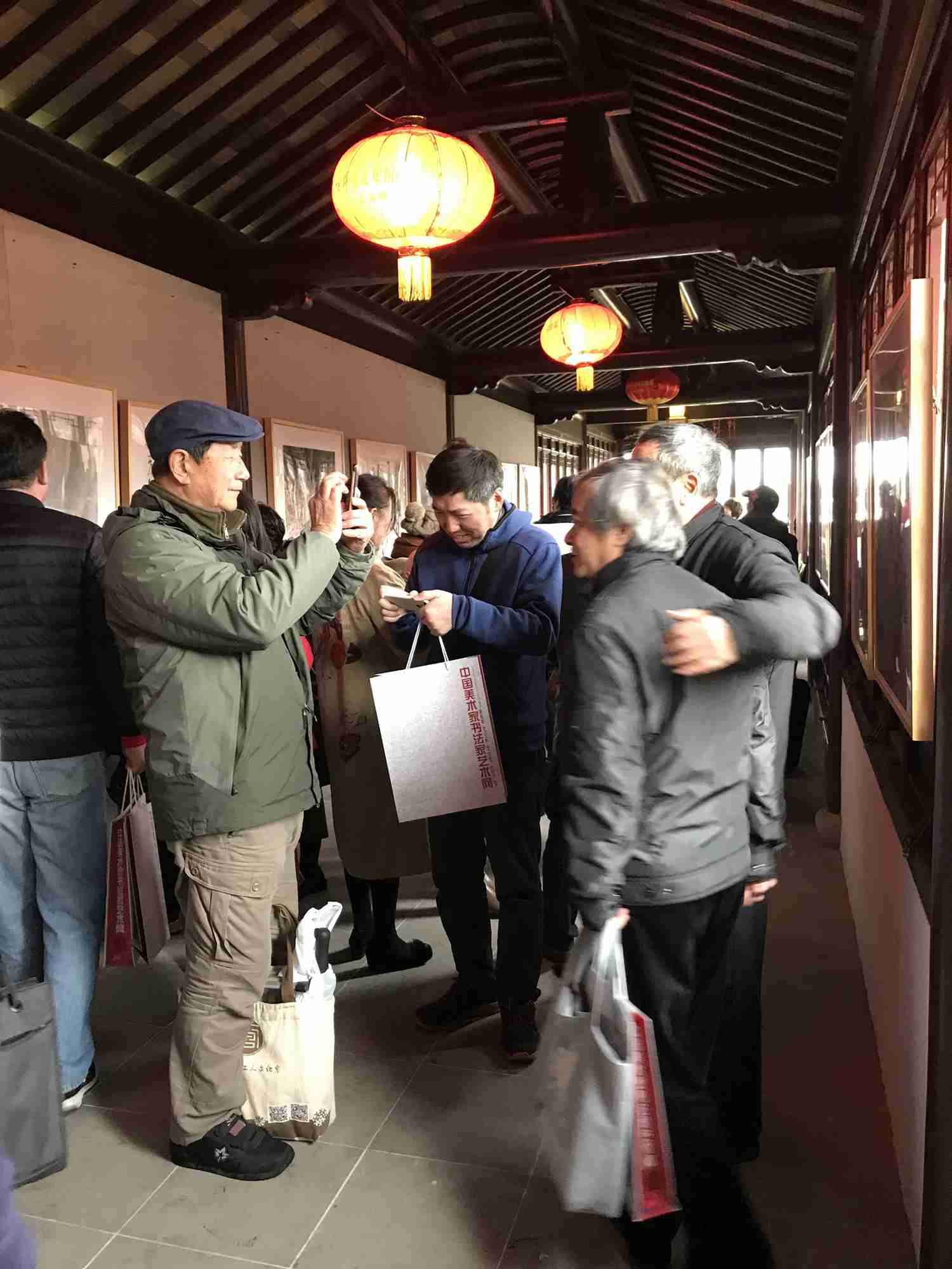 三月十四日早晨,天还下着雨,上午十点半,雨停了,上海名家梅花书画作品邀请展开幕式准点开幕。来自市区一百多位画家来到沙龙与虹口美协的创作基地奉贤海湾国家森林公园的唐梅厅画廊,一起参加开幕式活动。参加开幕式和写生活动的领导与贵宾有虹口区文联主席陆健,奉贤区文联主席瞿建国,著名画家杨正新,上海美协中国画院艺委会主任韩硕,上海市美协副主席陈琪,上海市书协副主席晁玉奎,上海市美协油画艺委会主任黄阿忠,上海市美协海墨画会会长应鹤光,上海市政协书画院副院长张培基,以及上海美协花鸟画艺术沙龙负责人余仁杰、夏建峰、余石等。这次活动总策划是夏建峰先生。首先由虹口区文联陆健主席祝开幕词,市书协副主席晁玉奎,市美协副主席陈琪,市美协油画艺委会主任黄阿忠分别讲话,最后由市美协中国画艺委会韩硕主任,宣布画展开幕。画家们与前来看展的市民在展厅中一同欣赏艺术与大自然相结合的美好。感受在艺术家的笔墨下呈现出的梅花的冷艳清绝的傲骨风姿。