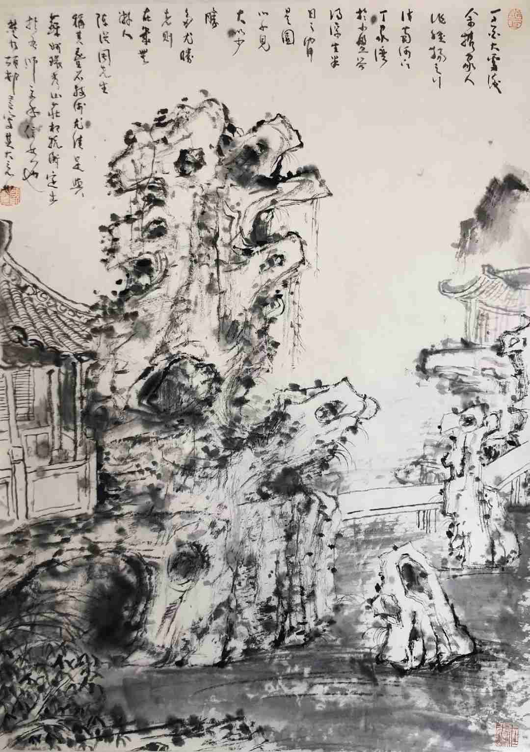 ▲顾村言《扬州小盘谷写生》 45×65cm