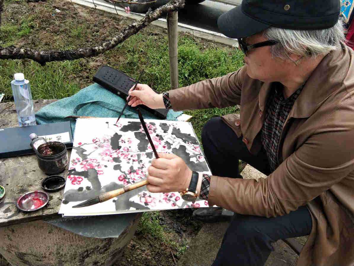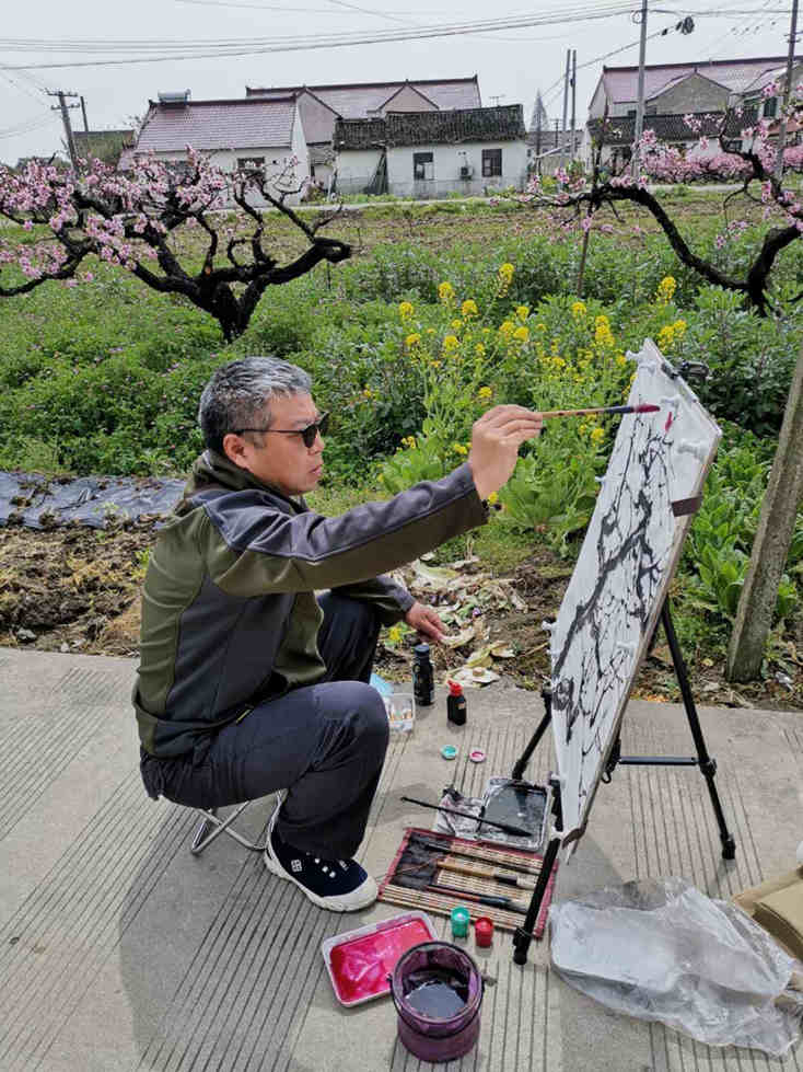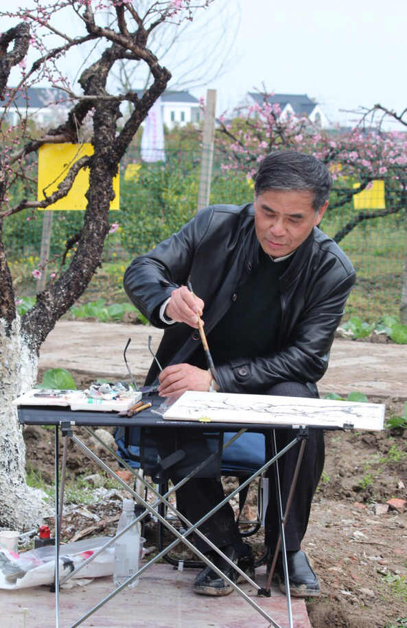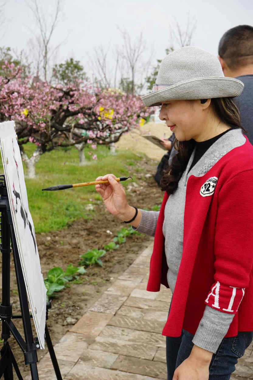 29日上午七点一刻,大巴带着市区的画家们从虹口区文化馆出发,自驾来的画家们,早早地来到现场,老师们一个个精神饱满,拿起了画笔,把桃花的美,画到极致,活动一直持续到下午三点钟。
