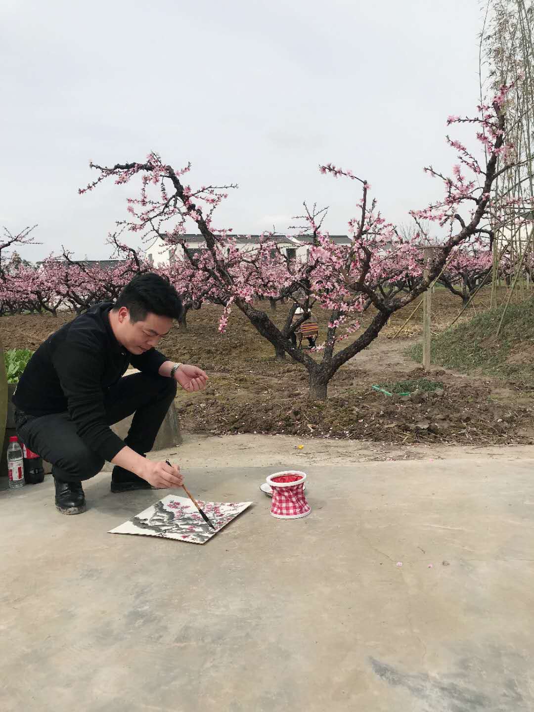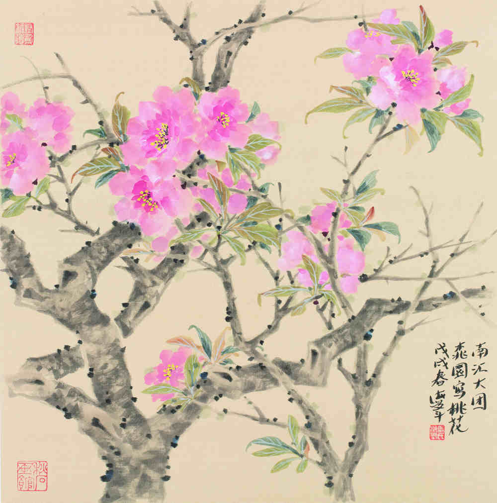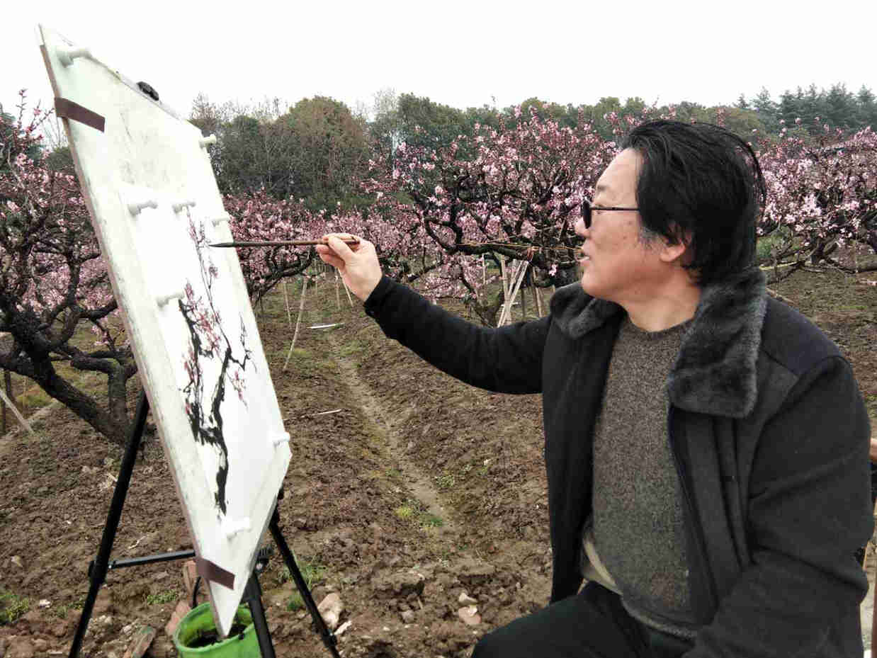 29日上午七点一刻,大巴带着市区的画家们从虹口区文化馆出发,自驾来的画家们,早早地来到现场,老师们一个个精神饱满,拿起了画笔,把桃花的美,画到极致,活动一直持续到下午三点钟。