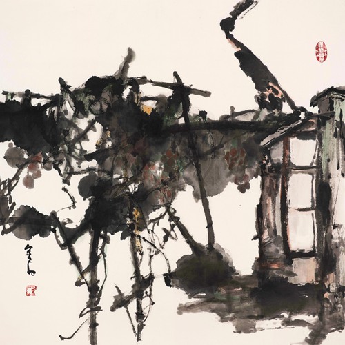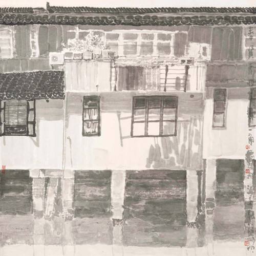 葛幸福《青村古镇一角》