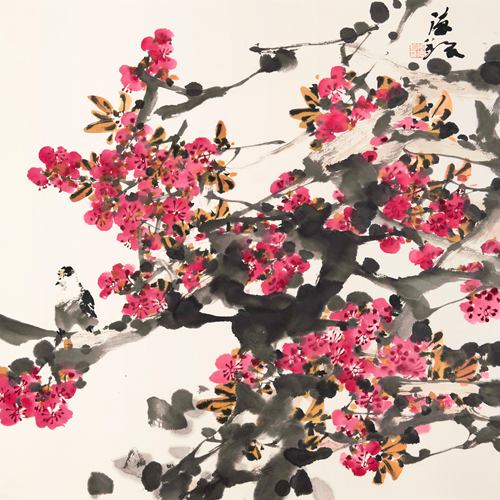 李新卫《桃花小鸟》