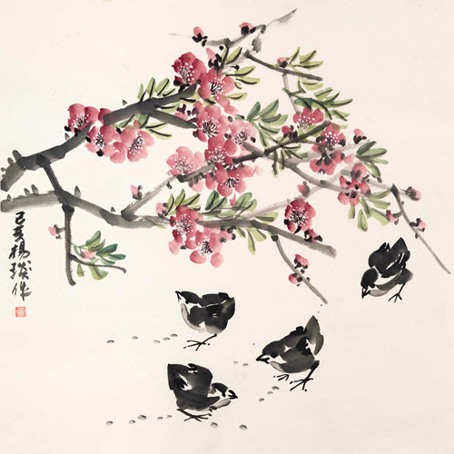 杨 琰《桃花小鸟》