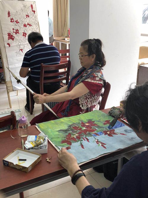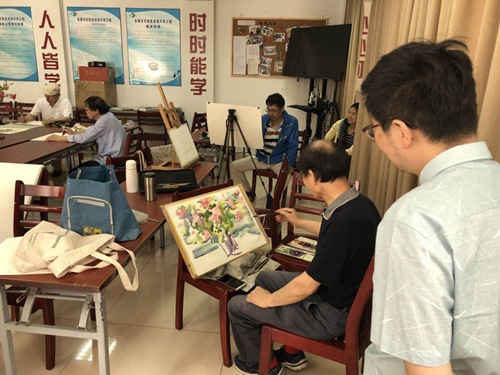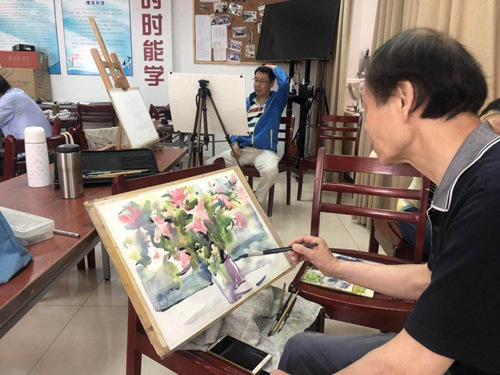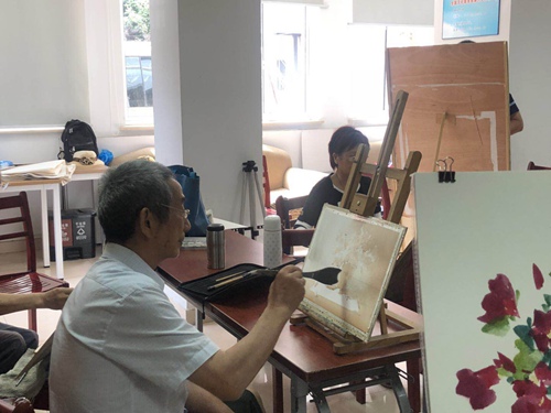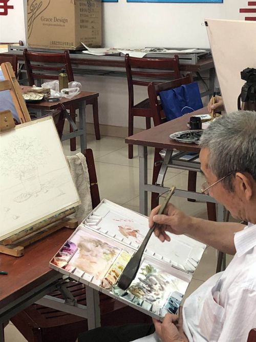 昨天下午在天山街道社区文化活动中心,在画友荟创作沙龙主持武国强老师早早地来了,沙龙成员的老师们从全市各个地方汇聚在一起,最远的从金山区过来。虽然是国画组活动,油画、版画和水彩画的老师都来写生了。